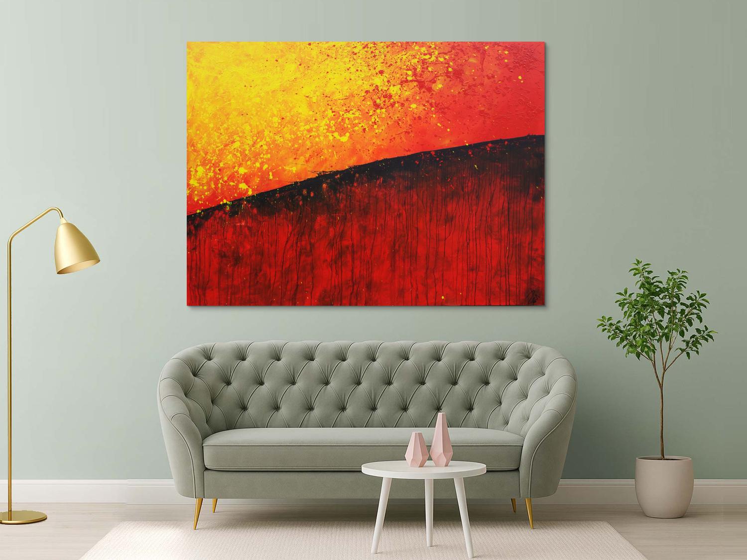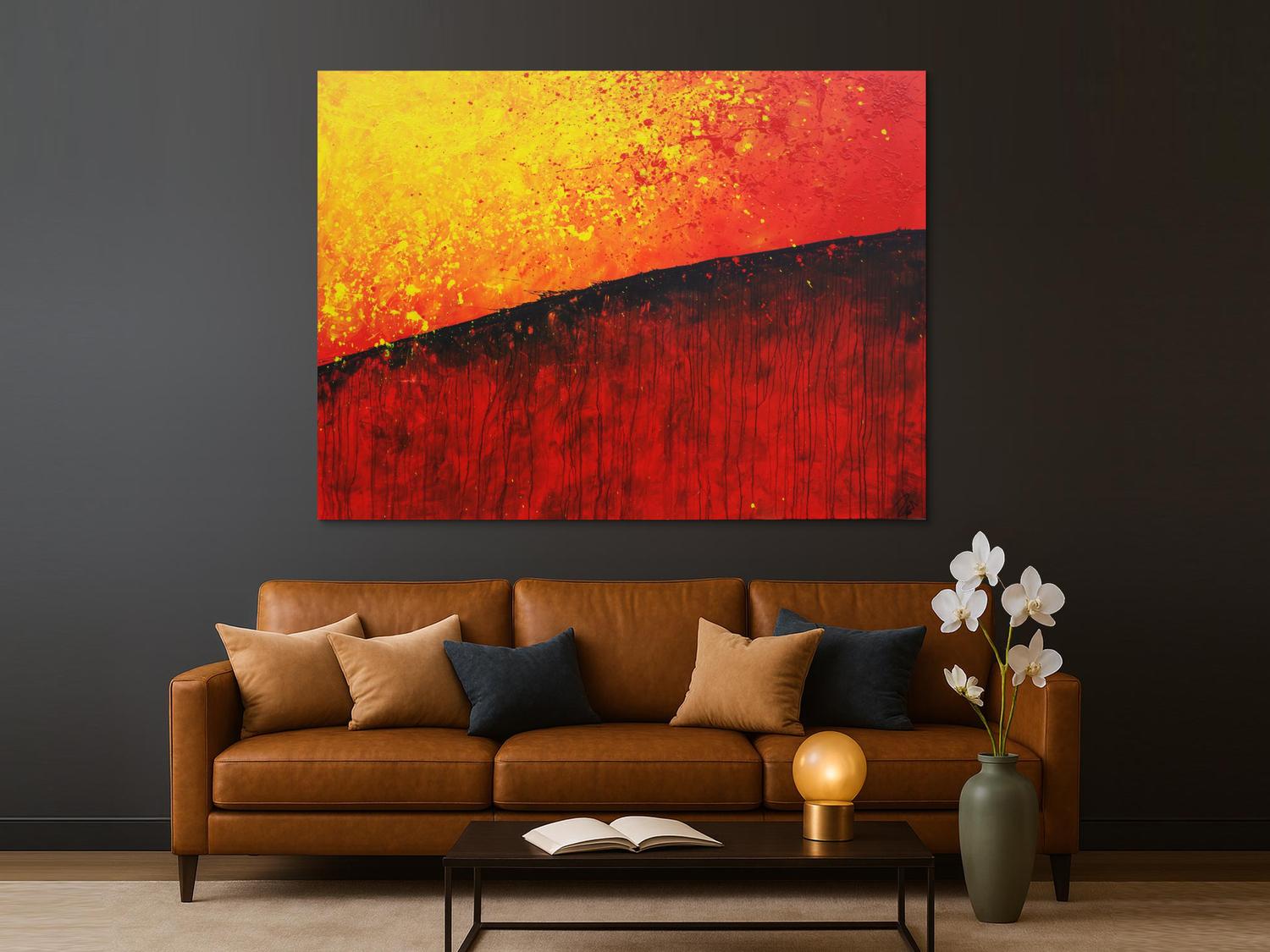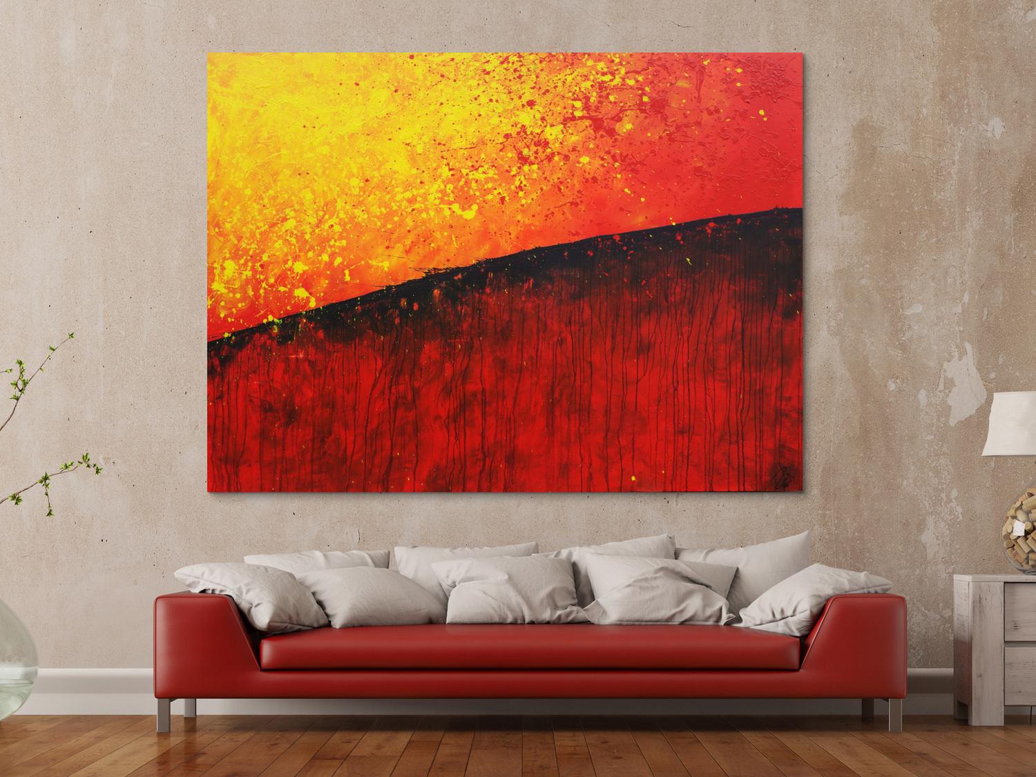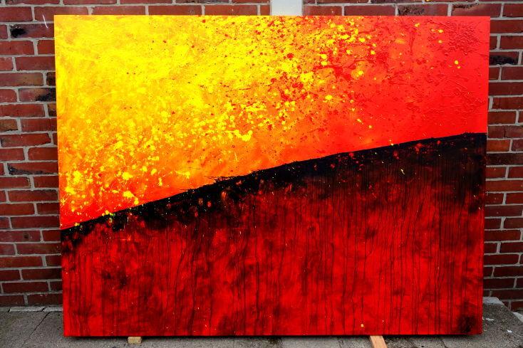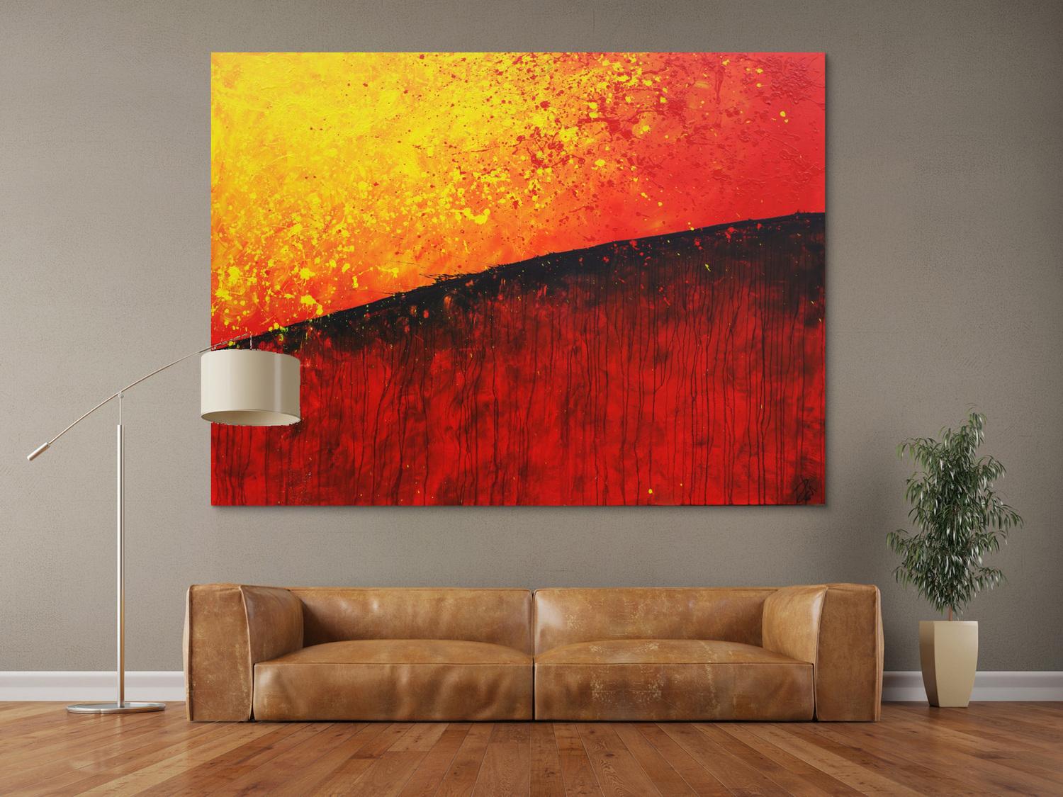 Abstraktes Gemälde auf Leinwand Abstraktes Gemälde orange rot gelb schwarz zeitgenössisch modern in 150x200cm von Alex Zerr