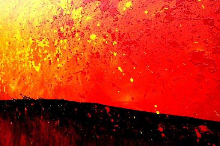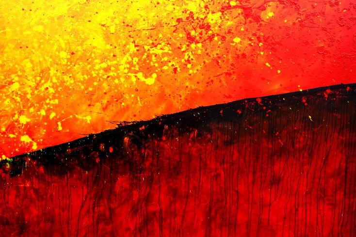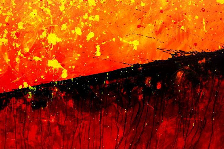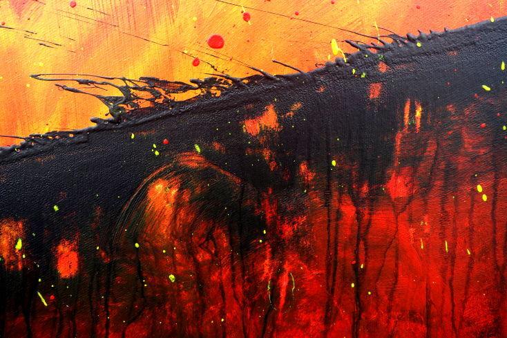 Abstraktes Gemälde orange rot gelb schwarz zeitgenössisch modern