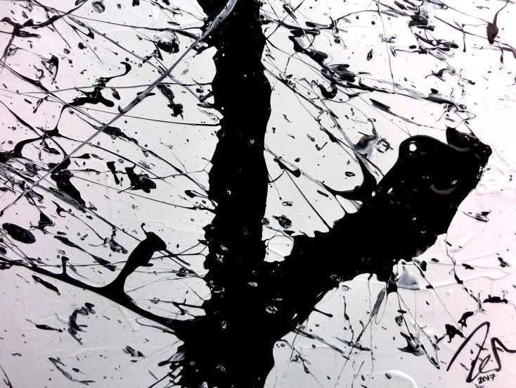 Abstraktes Gemälde schwarz weiß minimalistisch modern schlicht Action Painting