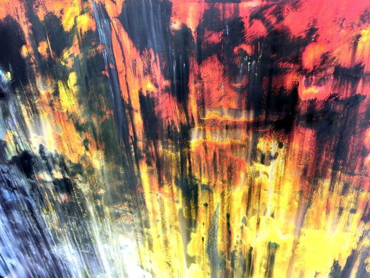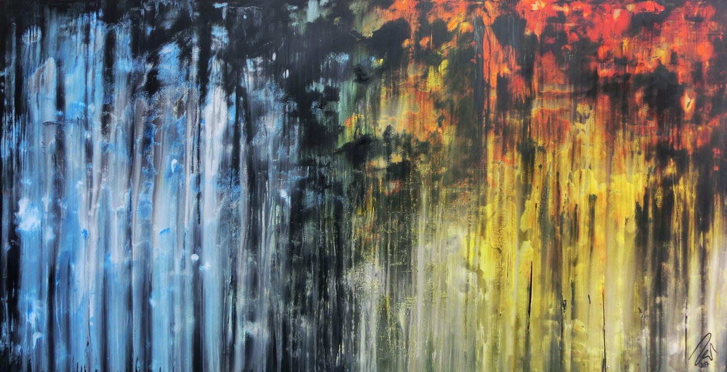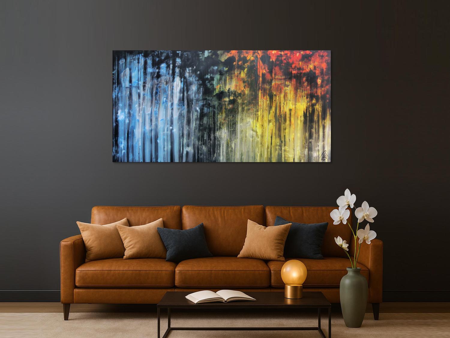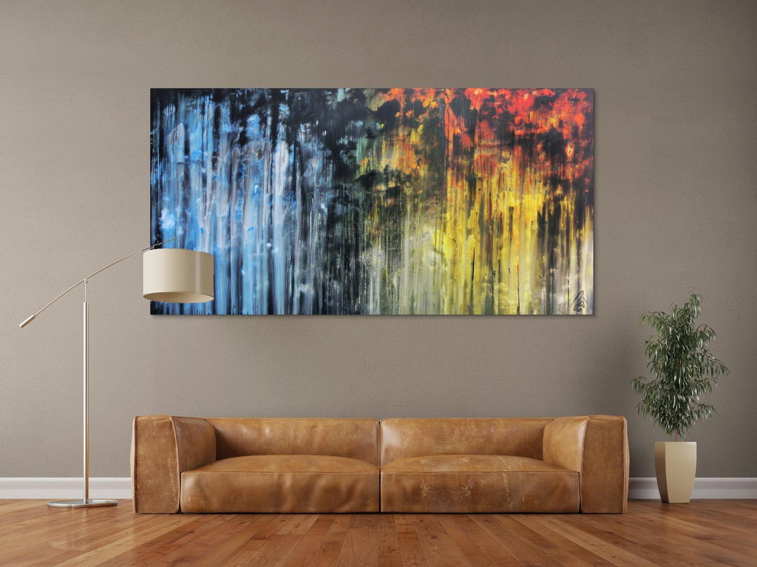Dieses abstrakte Acrylbild ist ein handgemaltes Original vom Künstler Alex Zerr aus Bad Lisppringe und ist im Jahr 2017 in seinem Atelier entstanden. Das Bild hat eine Größe von 100x200cm und ist bereits auf einem hochwertigen und stabilem Rahmen aufgespannt. Dadurch kann das Bild nach der Lieferung direkt an die Wand gehängt werden und sofort in Ihrem Raum wirken. Alle Seiten des Gemäldes sind passend zum Motiv bemalt, so dass kein zusätzlicher Rahmen benötigt wird.