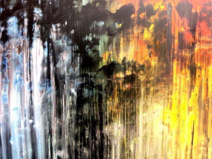 Dieses Werk ist wie alle meine Bilder: spontan entstanden, ganz intuitiv und ohne festes Konzept, und spiegelt oft meine momentane Stimmung wider wie auf der Leinwand festgehalten wurde.