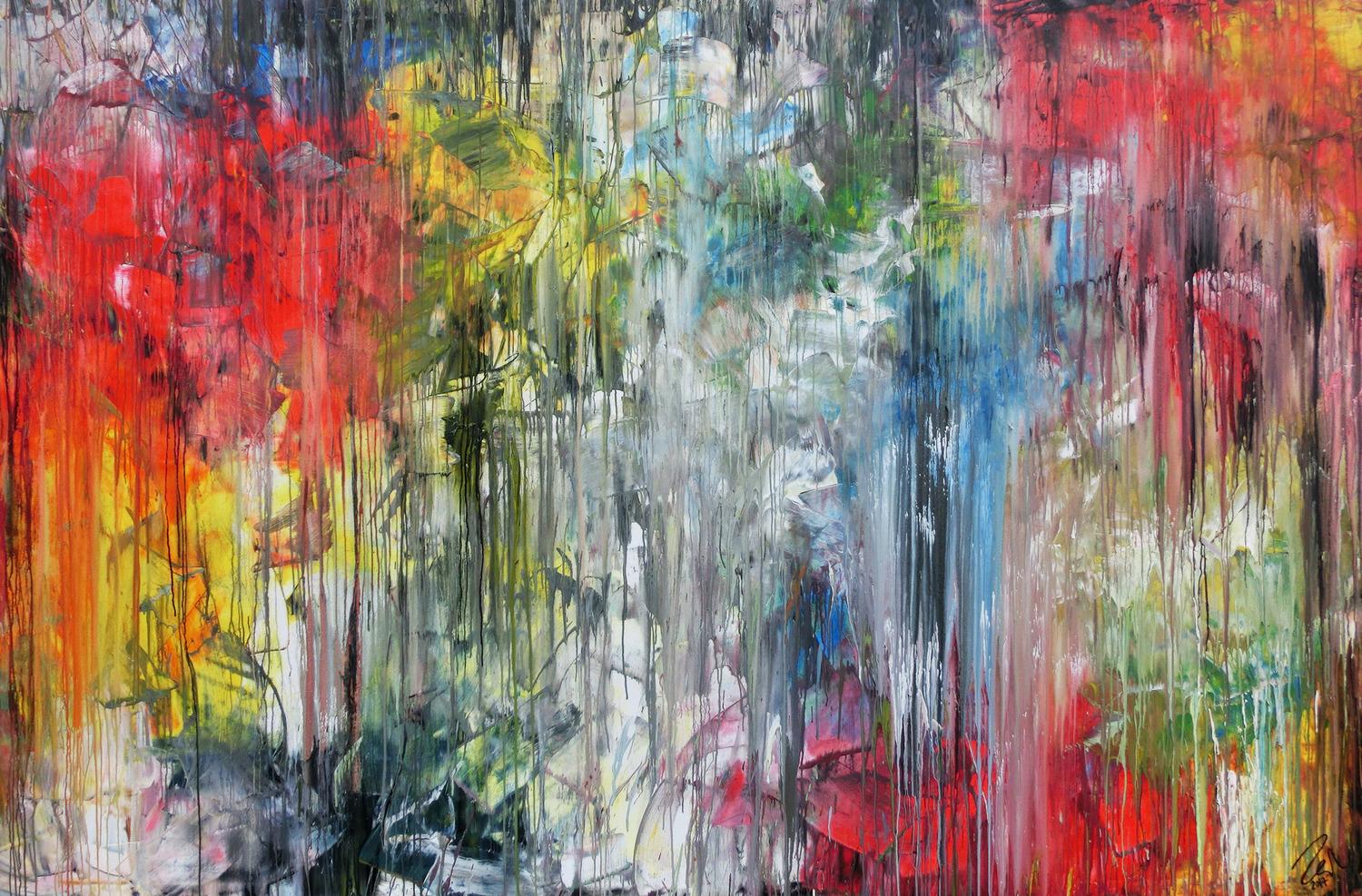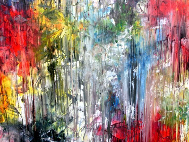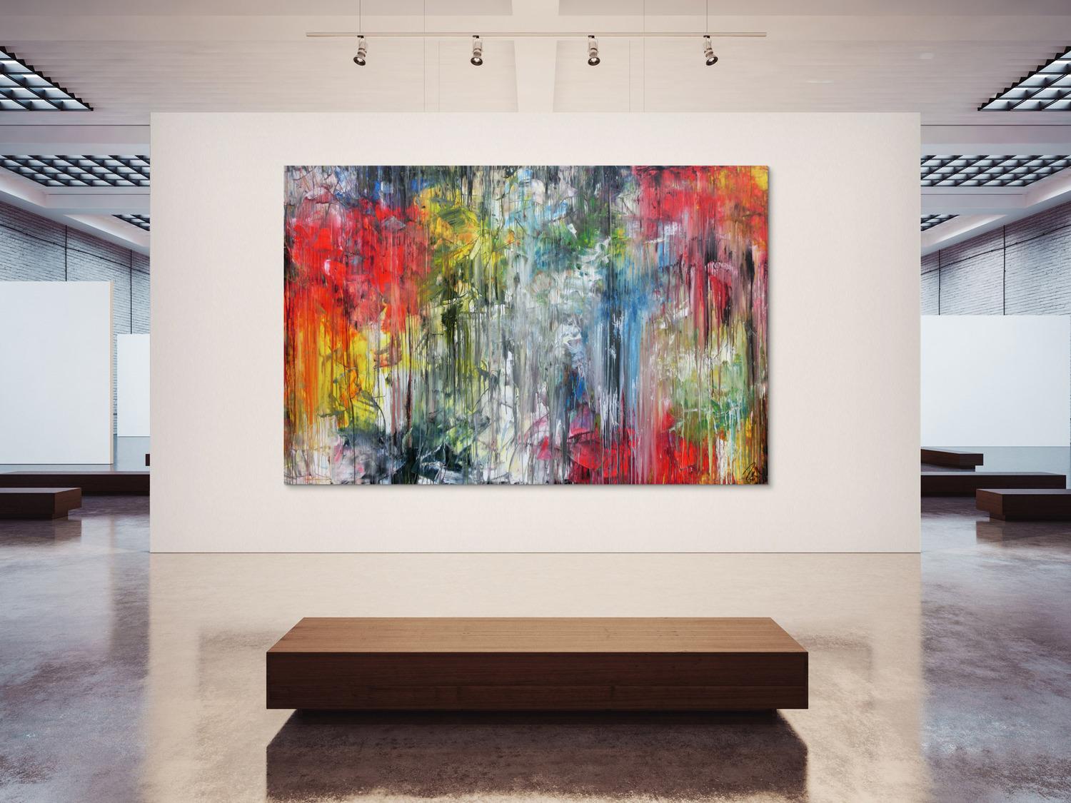 Abstraktes Gemälde sehr bunt in XXXL modern sehr groß abstrakt Fließtechnik