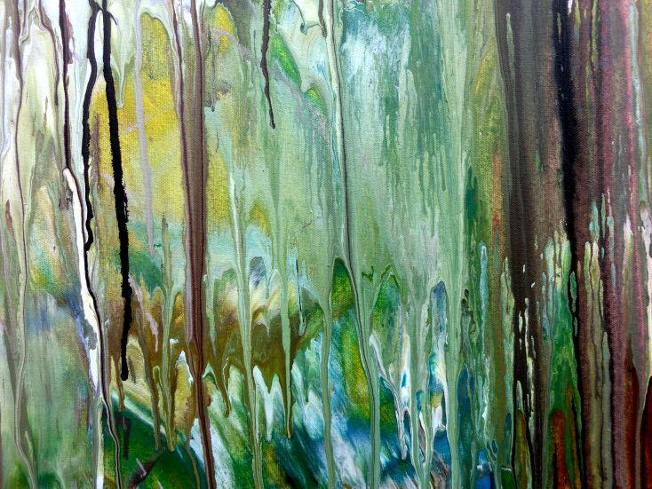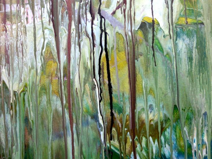 Dieses Werk ist wie alle meine Bilder: spontan entstanden, ganz intuitiv und ohne festes Konzept, und spiegelt oft meine momentane Stimmung wider wie auf der Leinwand festgehalten wurde.