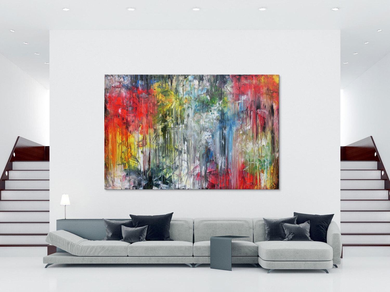 Die großformatigen, abstrakten Acrylgemälde sind ideal für Wohnzimmer, Schlafzimmer, Büros oder Geschäftsräume. Sie setzen farbenfrohe Akzente und schaffen eine lebendige, individuelle Atmosphäre die Sie und Ihre Gäste oder Kunden beeindrucken wird.
