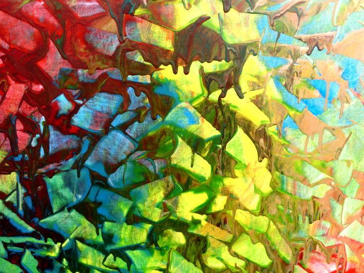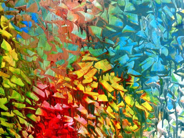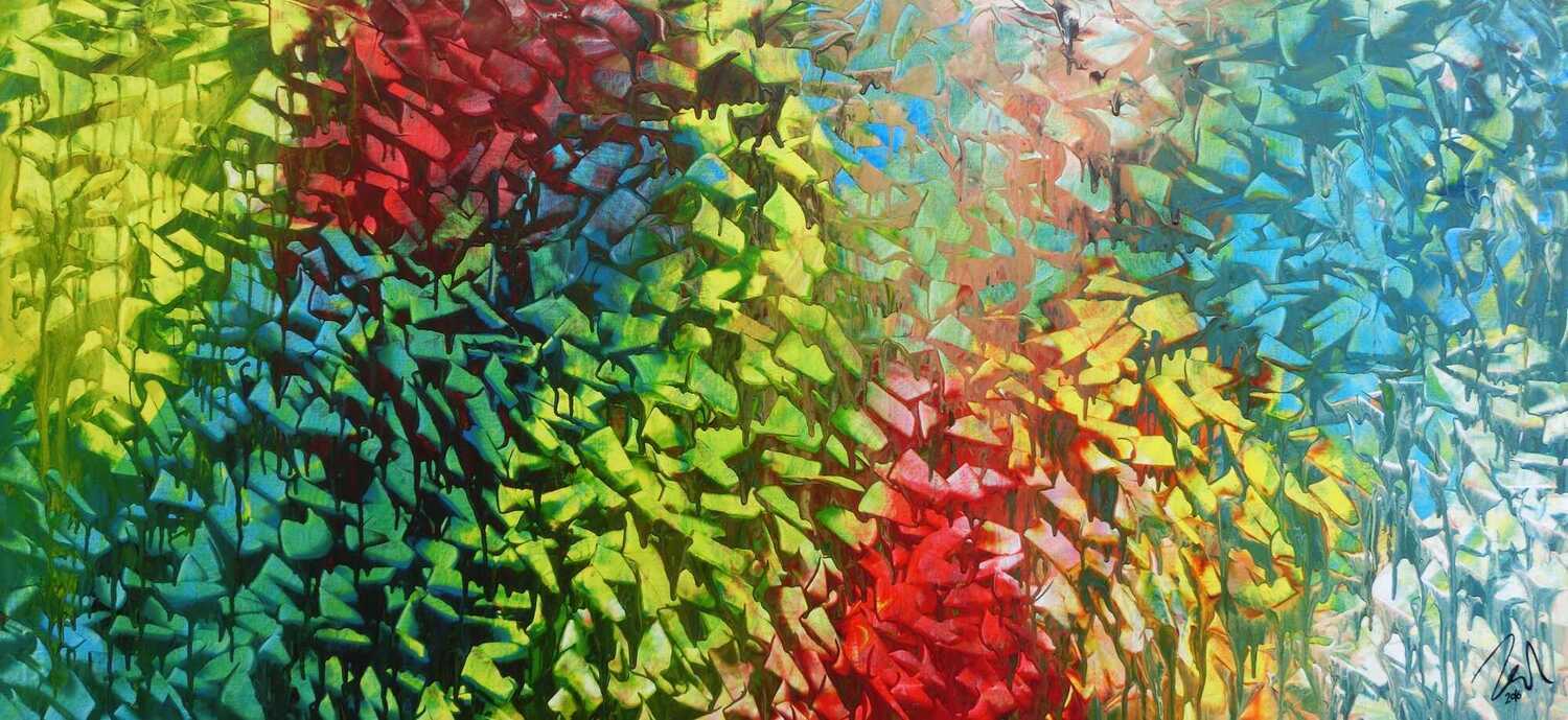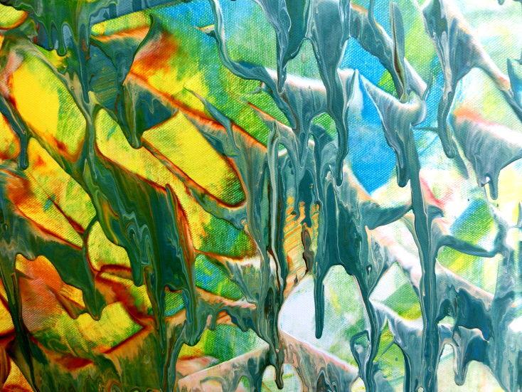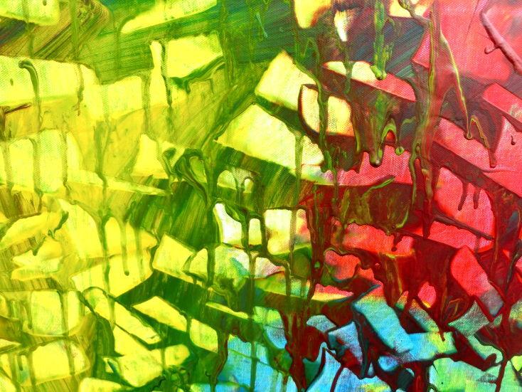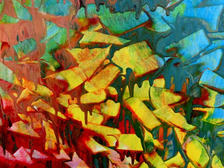 Abstraktes Gemälde sehr bunt modern zeitgenössisch in gelb türkis blau grün und rot