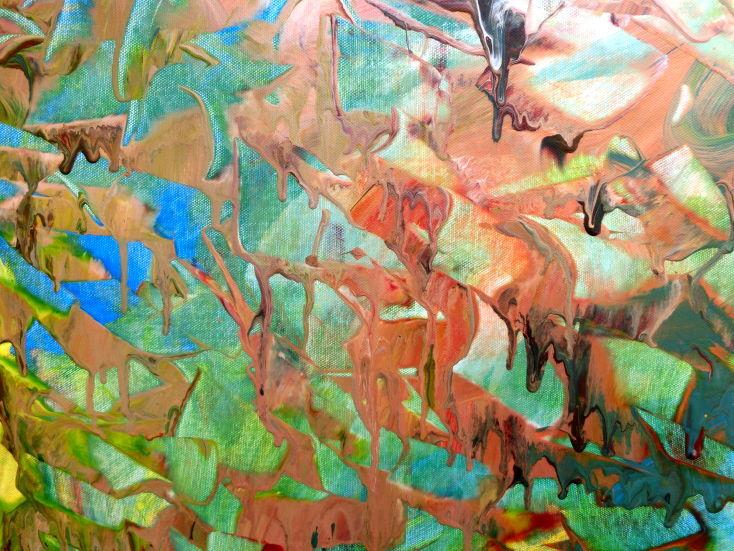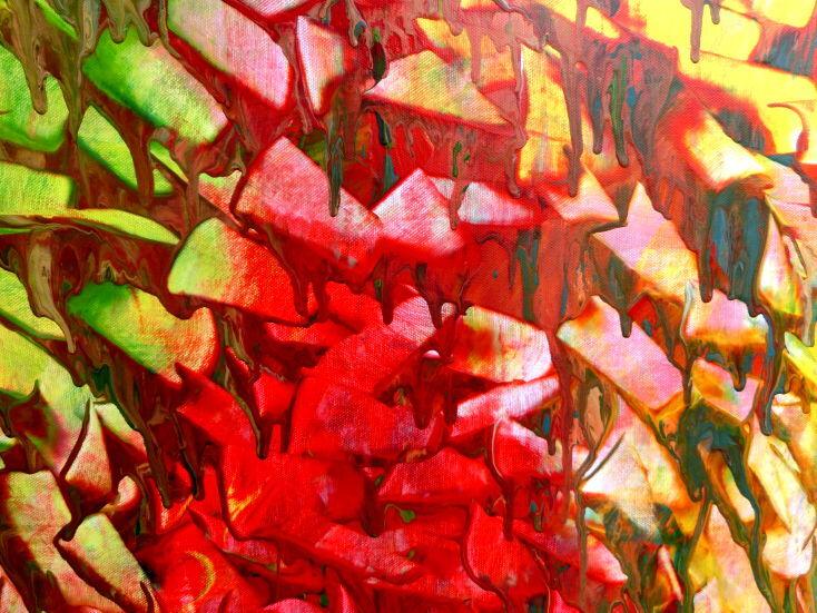 Dieses Werk ist wie alle meine Bilder: spontan entstanden, ganz intuitiv und ohne festes Konzept, und spiegelt oft meine momentane Stimmung wider wie auf der Leinwand festgehalten wurde.