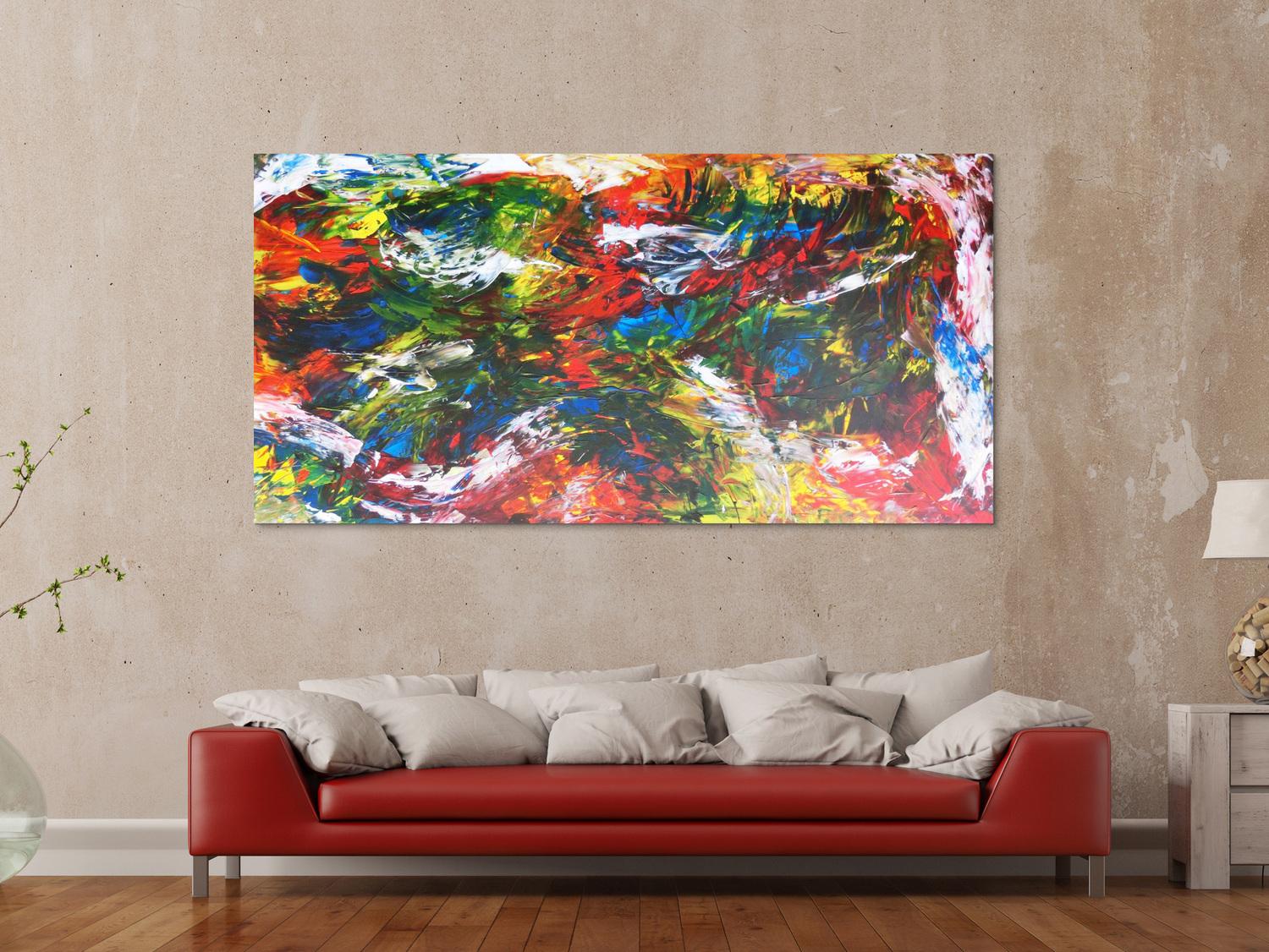 Abstraktes Gemälde auf Leinwand Abstraktes Gemälde sehr bunt Spachteltechnik modern zeitgenössisch expressionistisch in 100x200cm von Alex Zerr