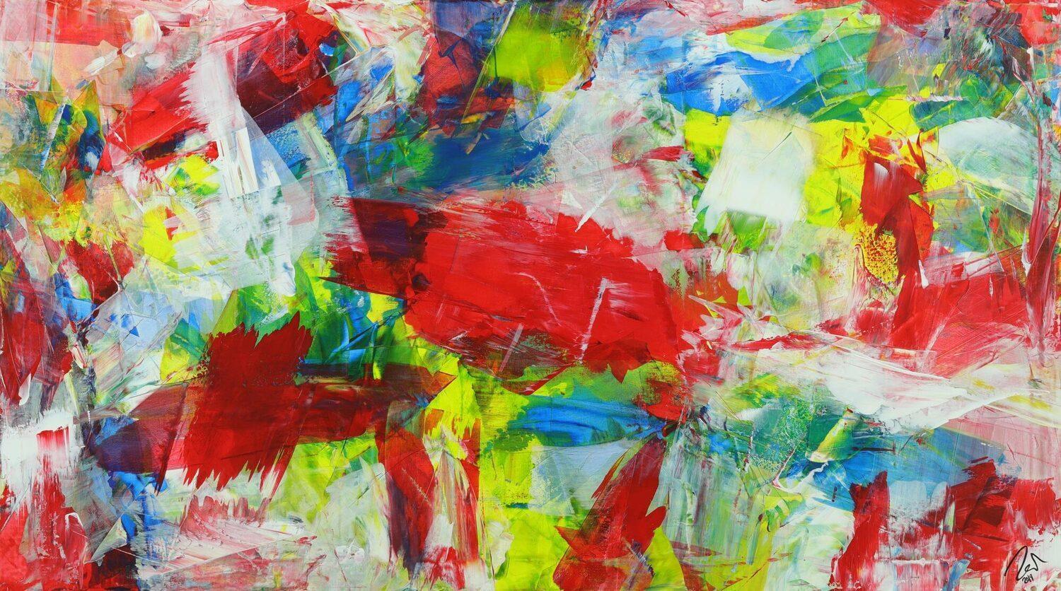 Abstraktes Gemälde sehr bunt zeitgenösssich Spachteltechnik Modern Art