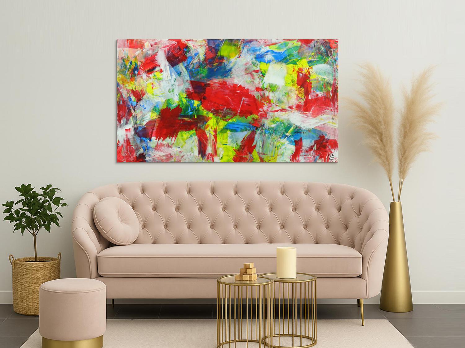 Die großformatigen, abstrakten Acrylgemälde sind ideal für Wohnzimmer, Schlafzimmer, Büros oder Geschäftsräume. Sie setzen farbenfrohe Akzente und schaffen eine lebendige, individuelle Atmosphäre die Sie und Ihre Gäste oder Kunden beeindrucken wird.