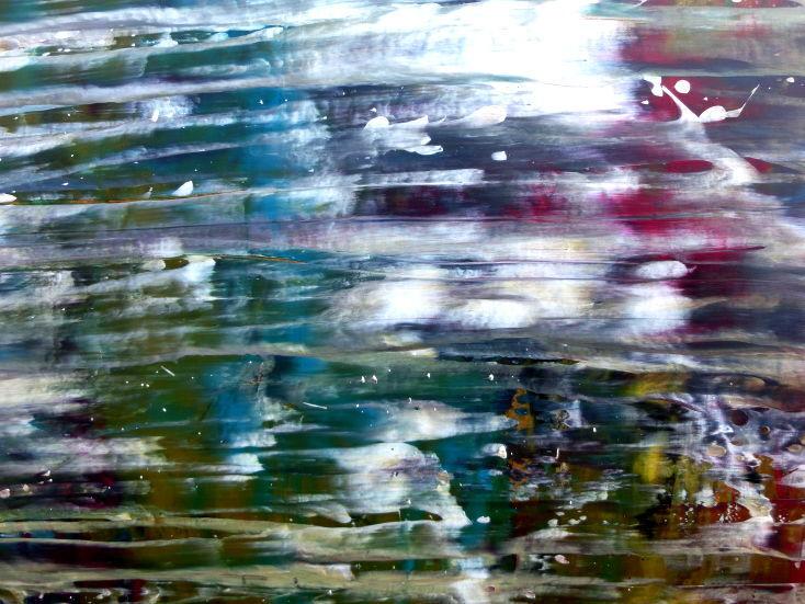 Dieses Werk ist wie alle meine Bilder: spontan entstanden, ganz intuitiv und ohne festes Konzept, und spiegelt oft meine momentane Stimmung wider wie auf der Leinwand festgehalten wurde.