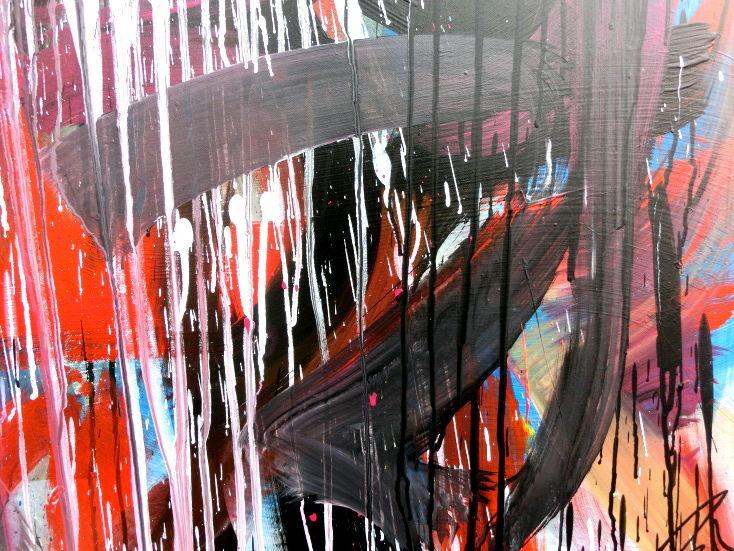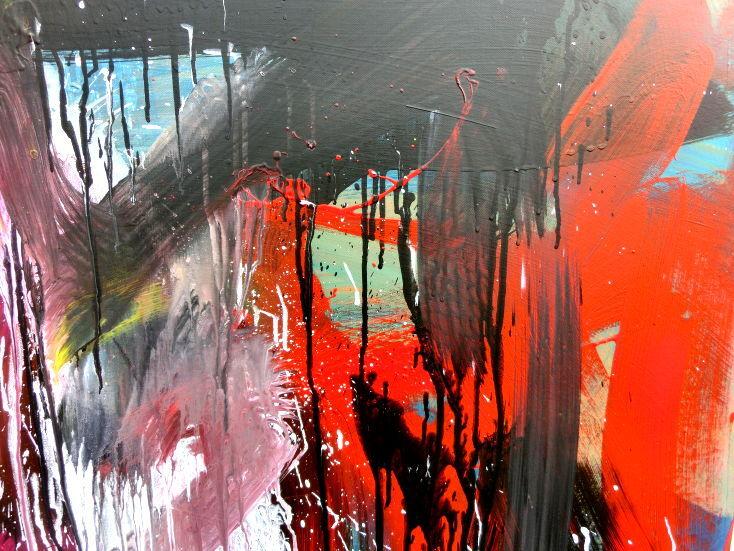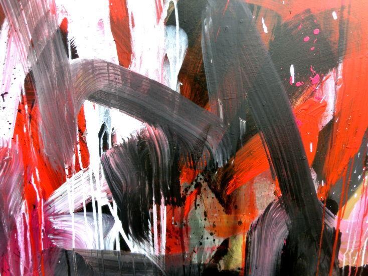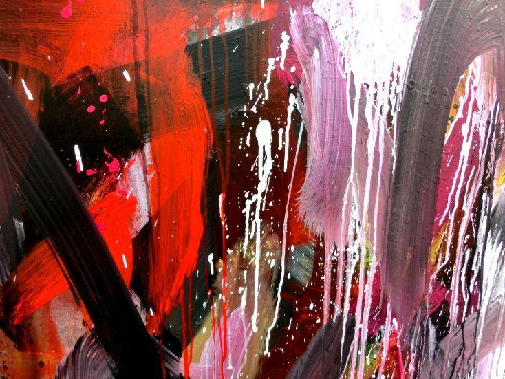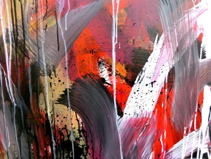 Abstraktes Gemälde sehr modernes Acrylbild Mischtechnik in rot schwarz weiß