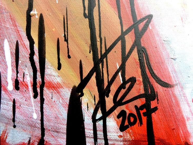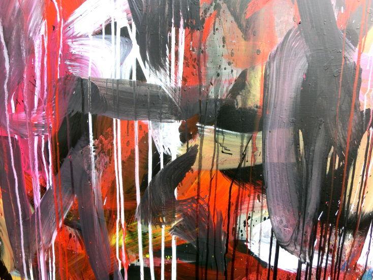 Dieses Werk ist wie alle meine Bilder: spontan entstanden, ganz intuitiv und ohne festes Konzept, und spiegelt oft meine momentane Stimmung wider wie auf der Leinwand festgehalten wurde.