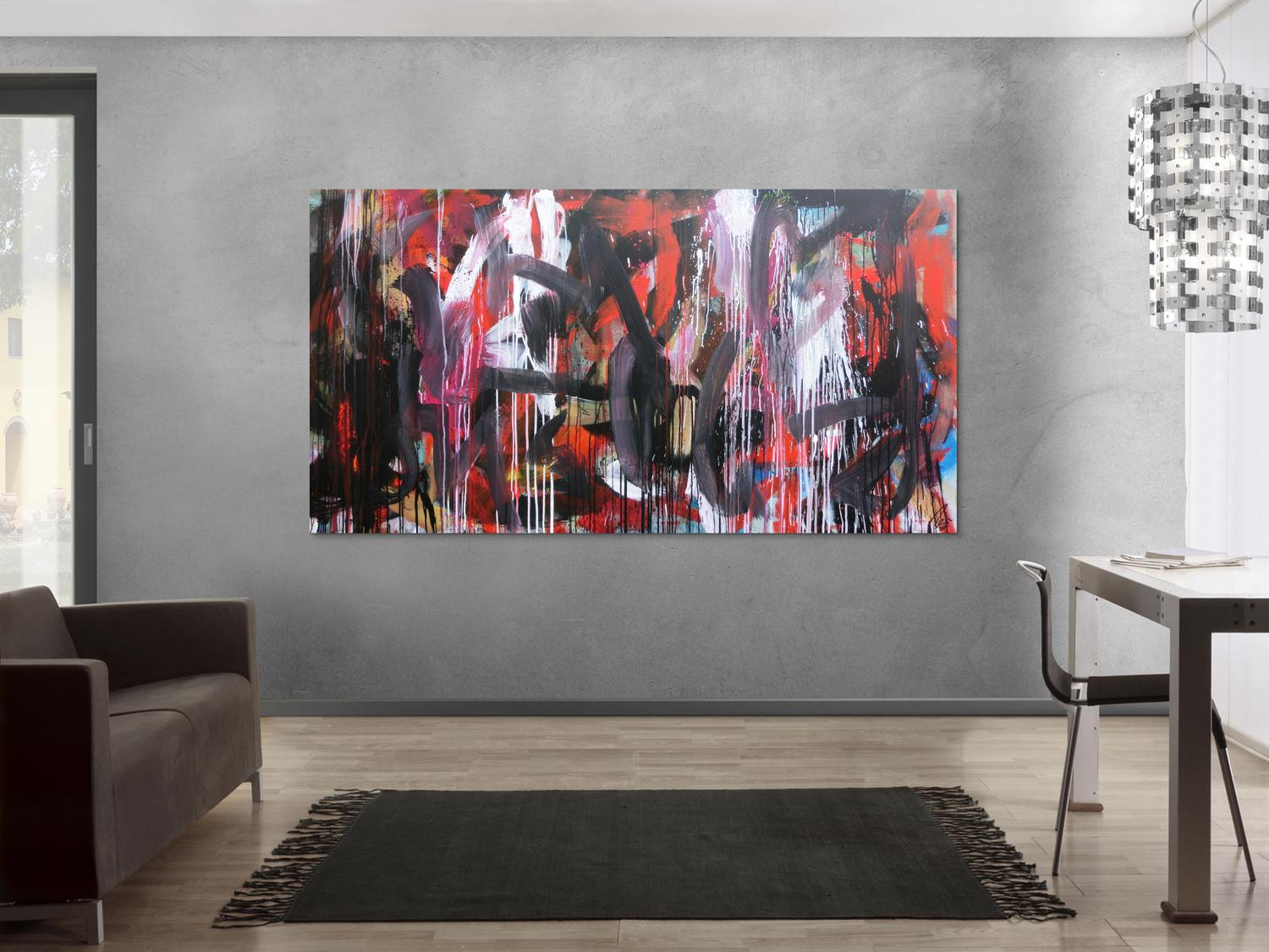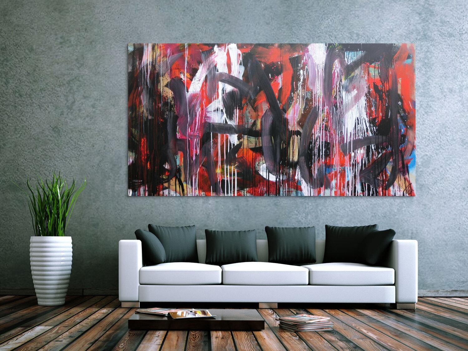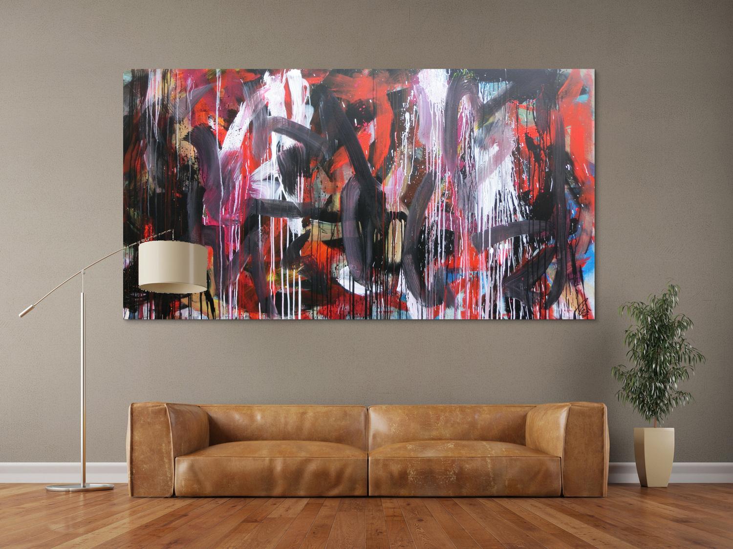 Abstraktes Gemälde auf Leinwand Abstraktes Gemälde sehr modernes Acrylbild Mischtechnik in rot schwarz weiß in 120x220cm von Alex Zerr