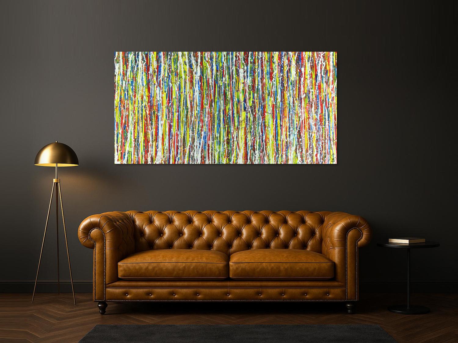 Abstraktes Gemälde auf Leinwand Abstraktes Gemälde seht bunt Action Paintng auf Leinwand handgemalt zeitgenössisch in 100x200cm von Alex Zerr