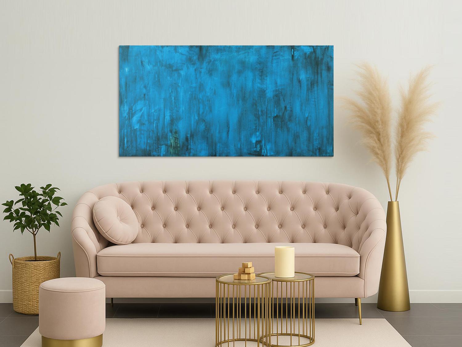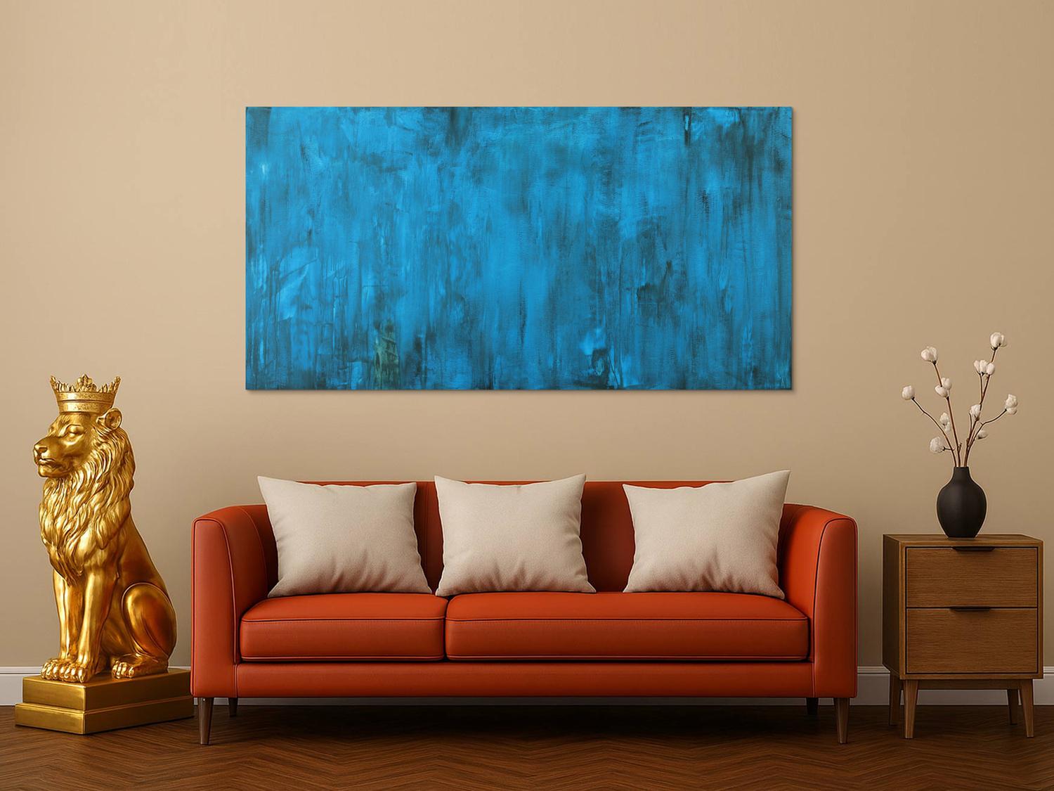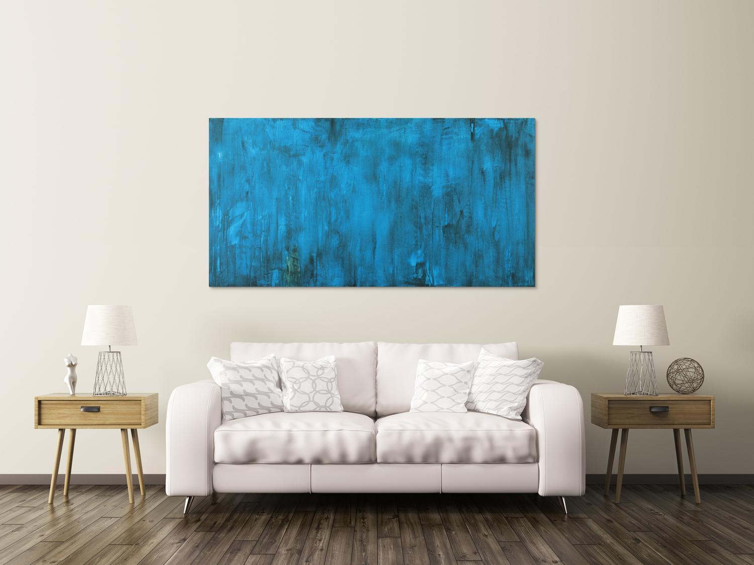 Abstraktes Gemälde auf Leinwand Abstraktes Gemälde Türkis vintage Look Modern Art handgemalt in 90x175cm von Alex Zerr
