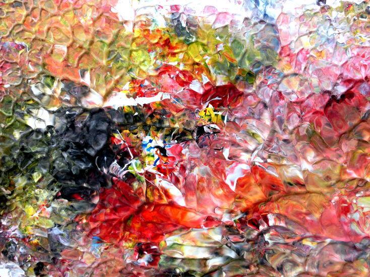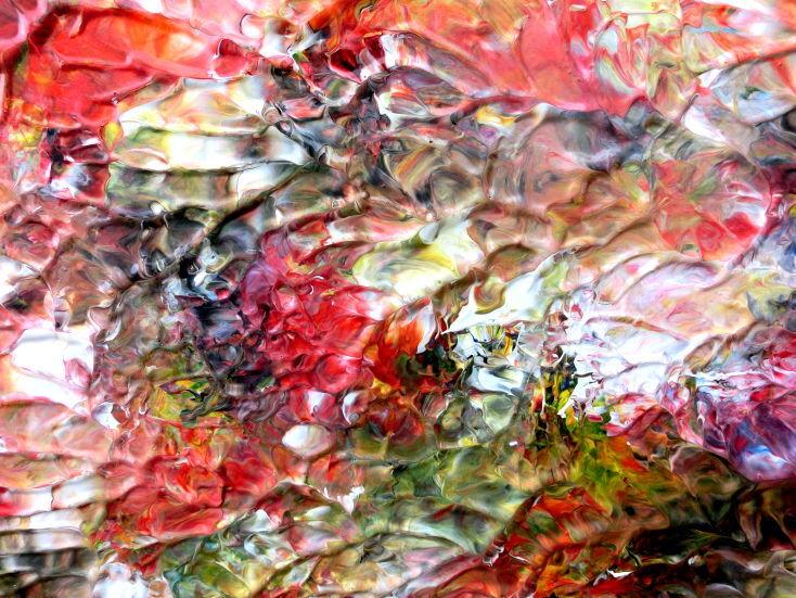 Dieses Werk ist wie alle meine Bilder: spontan entstanden, ganz intuitiv und ohne festes Konzept, und spiegelt oft meine momentane Stimmung wider wie auf der Leinwand festgehalten wurde.