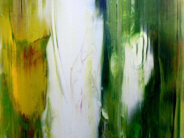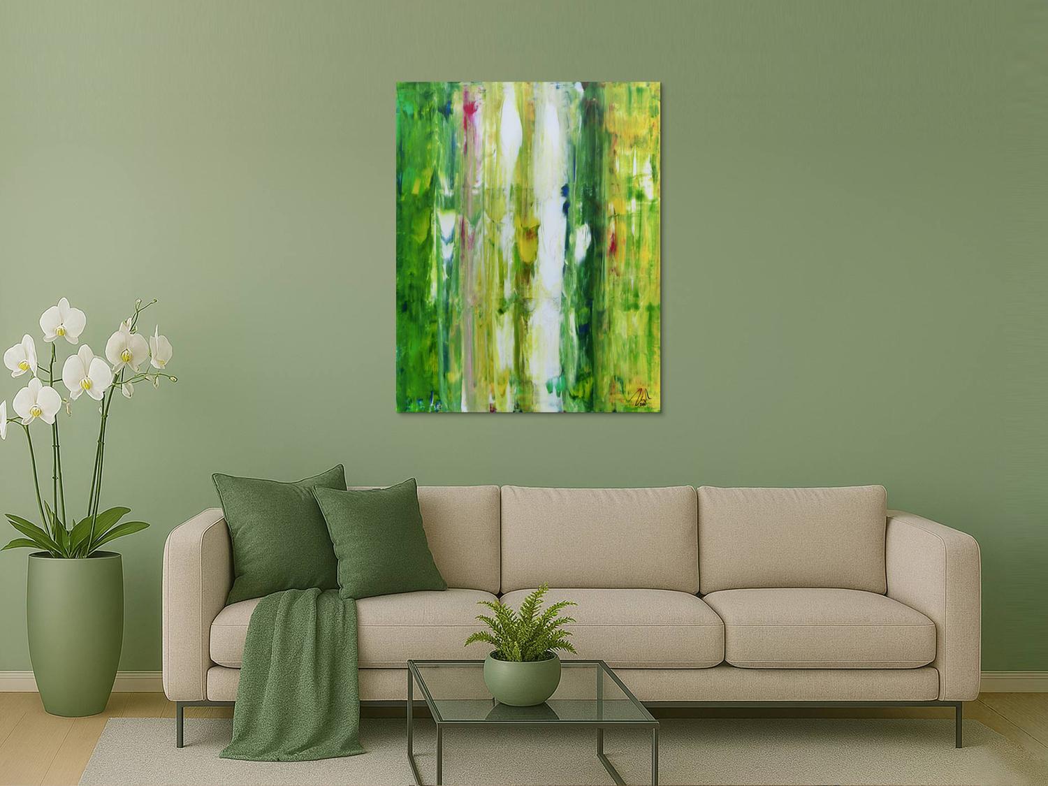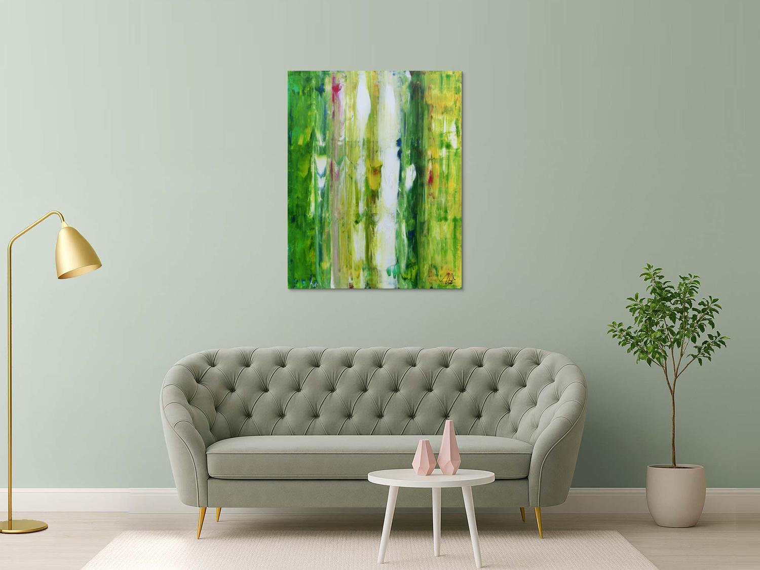 Abstraktes modernes Acryl Gemälde in grün und weiß