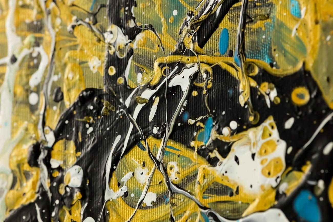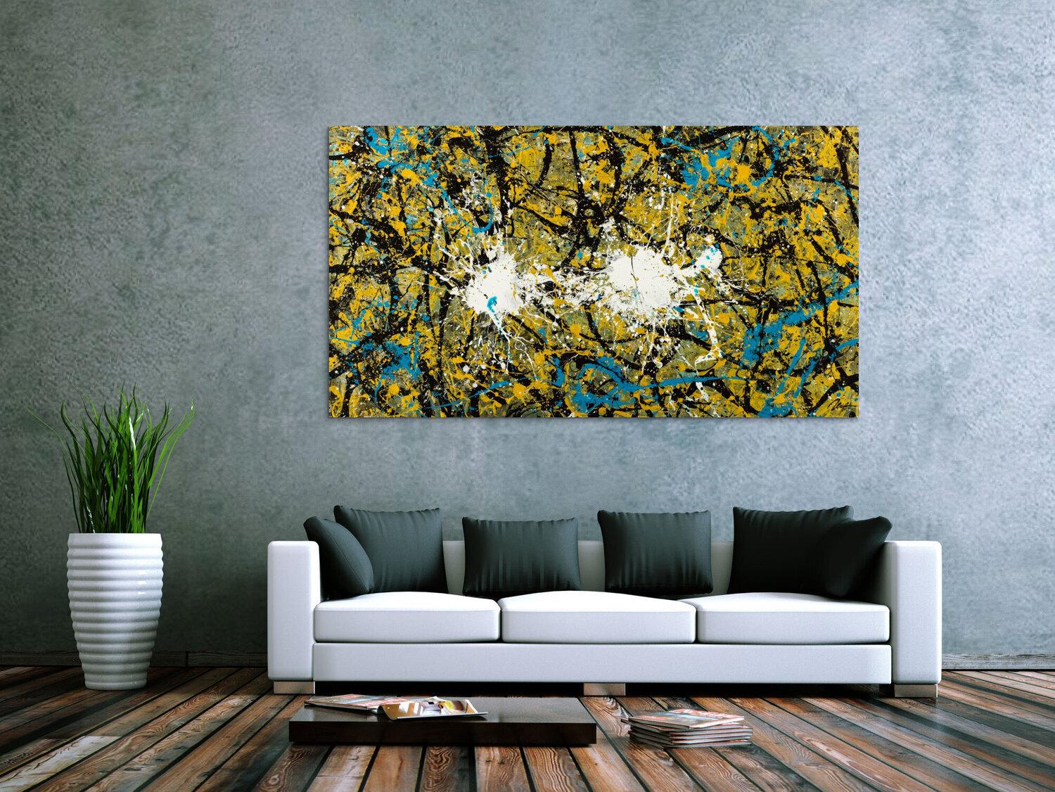 Abstraktes Original Gemälde 100x180cm Action Painting expressionistisch handgefertigt Mischtechnik schwarz gold türkis Unikat