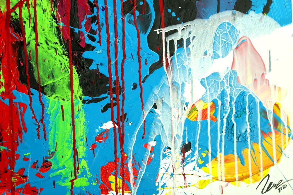 Dieses abstrakte Acrylbild ist ein handgemaltes Original vom Künstler Alex Zerr aus Bad Lisppringe und ist im Jahr 2020 in seinem Atelier entstanden. Das Bild hat eine Größe von 110x150cm und ist bereits auf einem hochwertigen und stabilem Rahmen aufgespannt. Dadurch kann das Bild nach der Lieferung direkt an die Wand gehängt werden und sofort in Ihrem Raum wirken. Alle Seiten des Gemäldes sind passend zum Motiv bemalt, so dass kein zusätzlicher Rahmen benötigt wird.