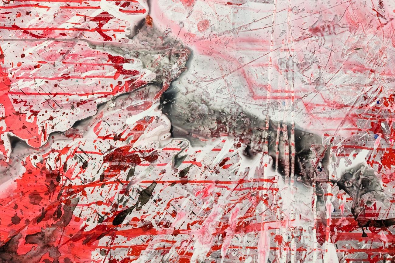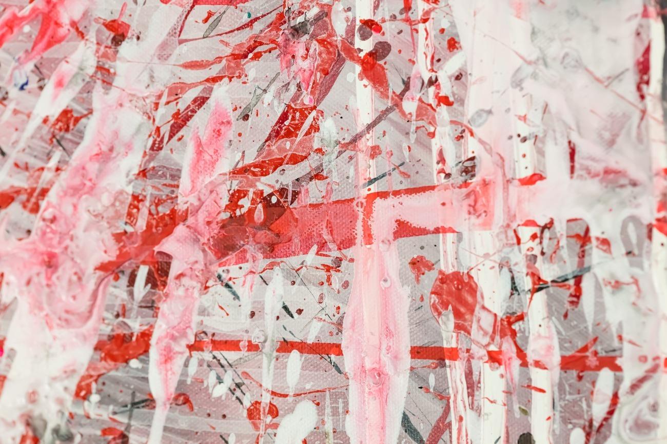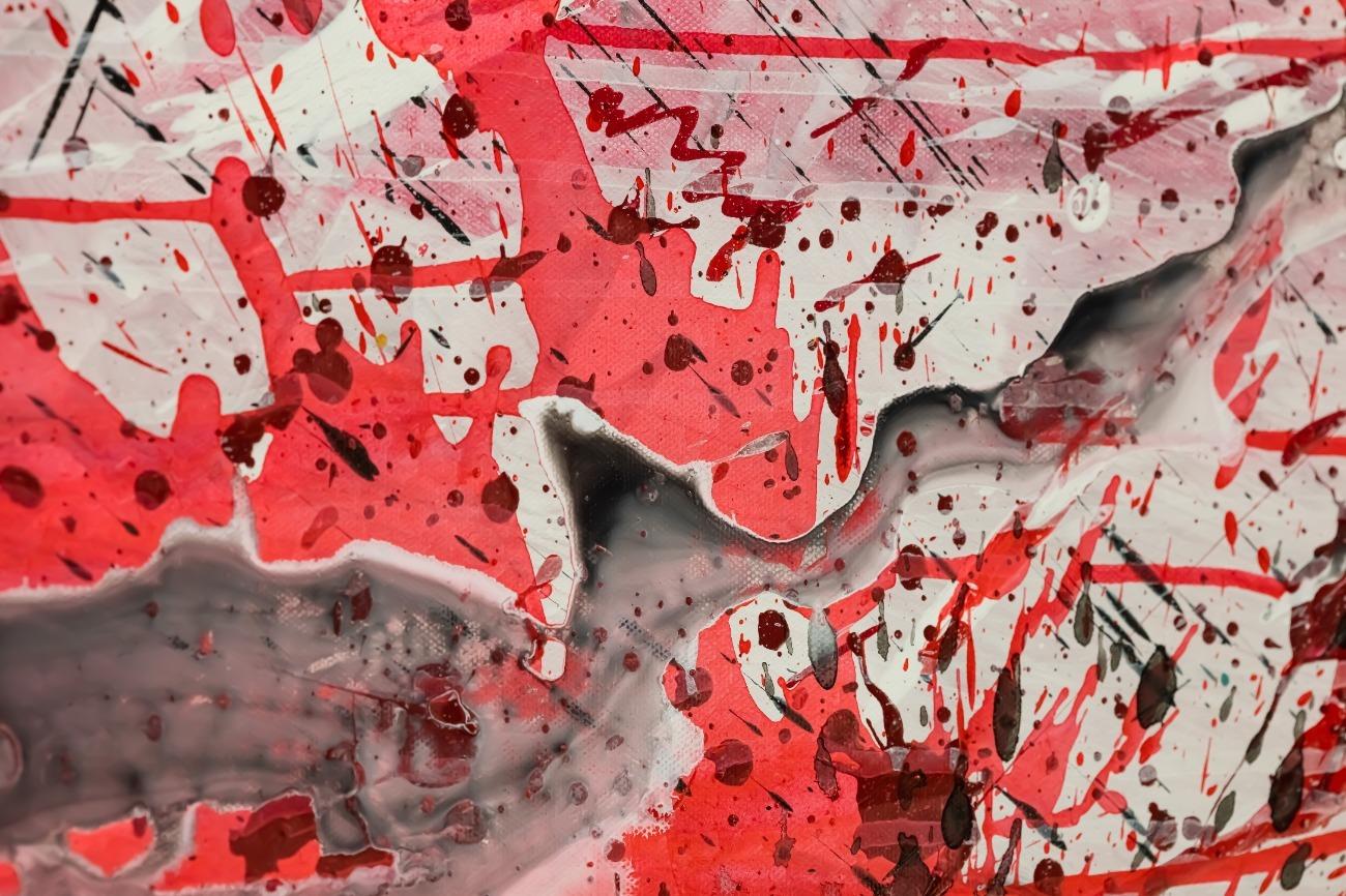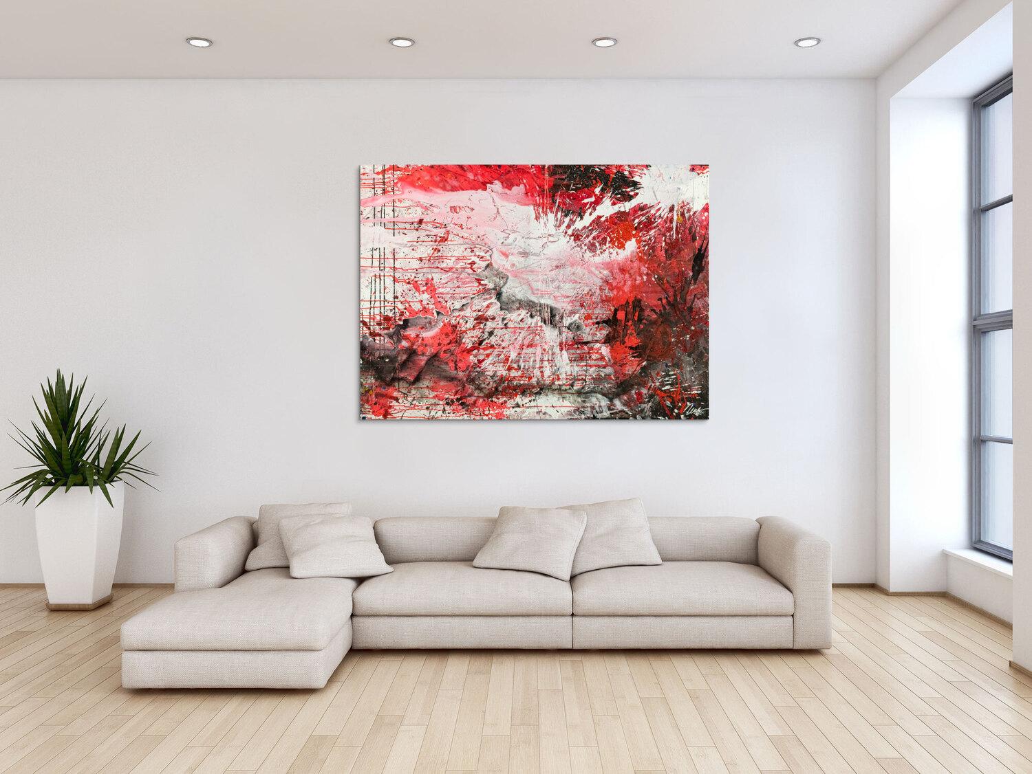 Abstraktes Original Gemälde 110x150cm Action Painting zeitgenössisch handgemalt Mischtechnik weiß rot schwarz einzigartig