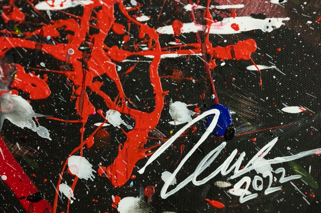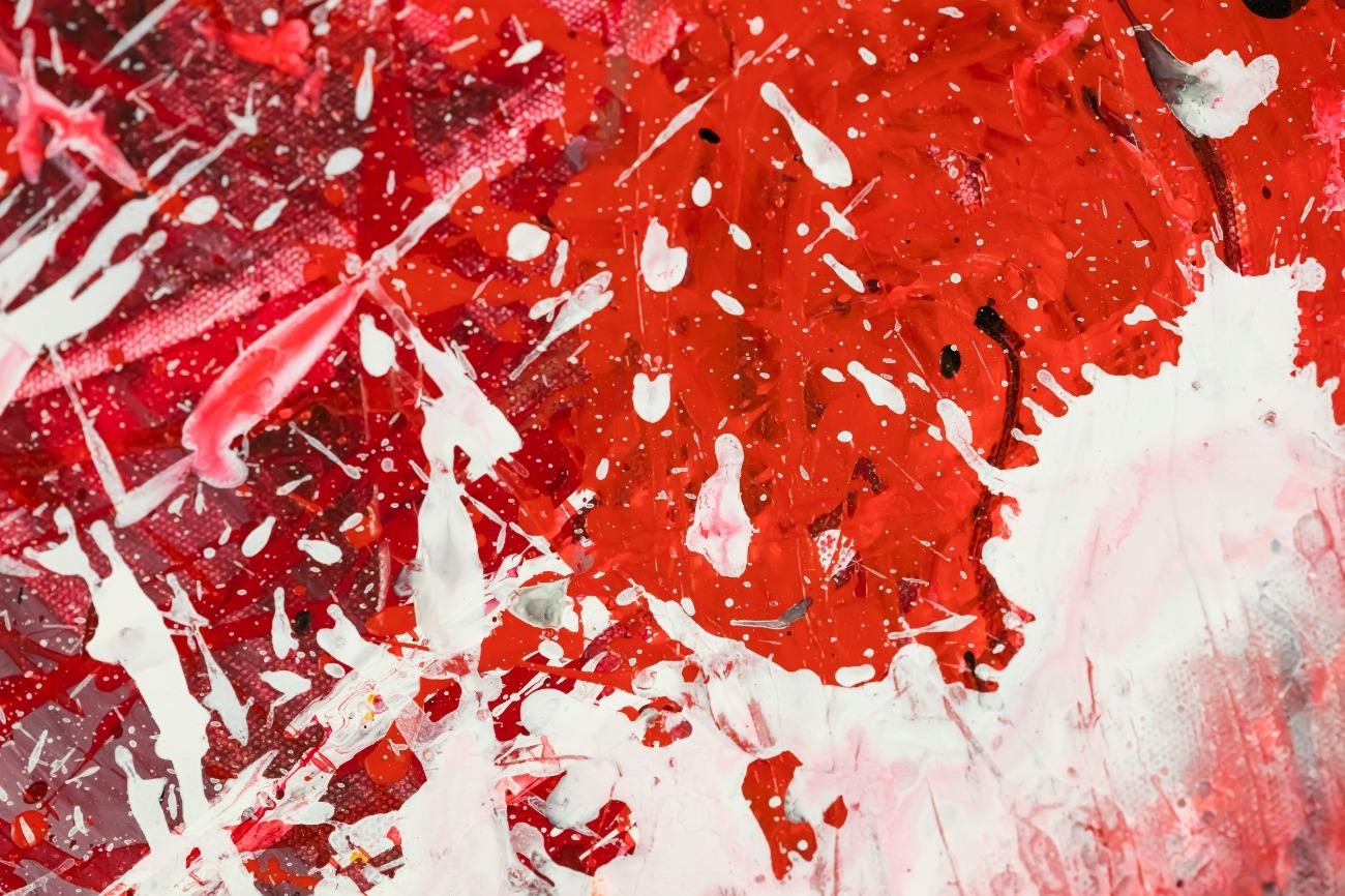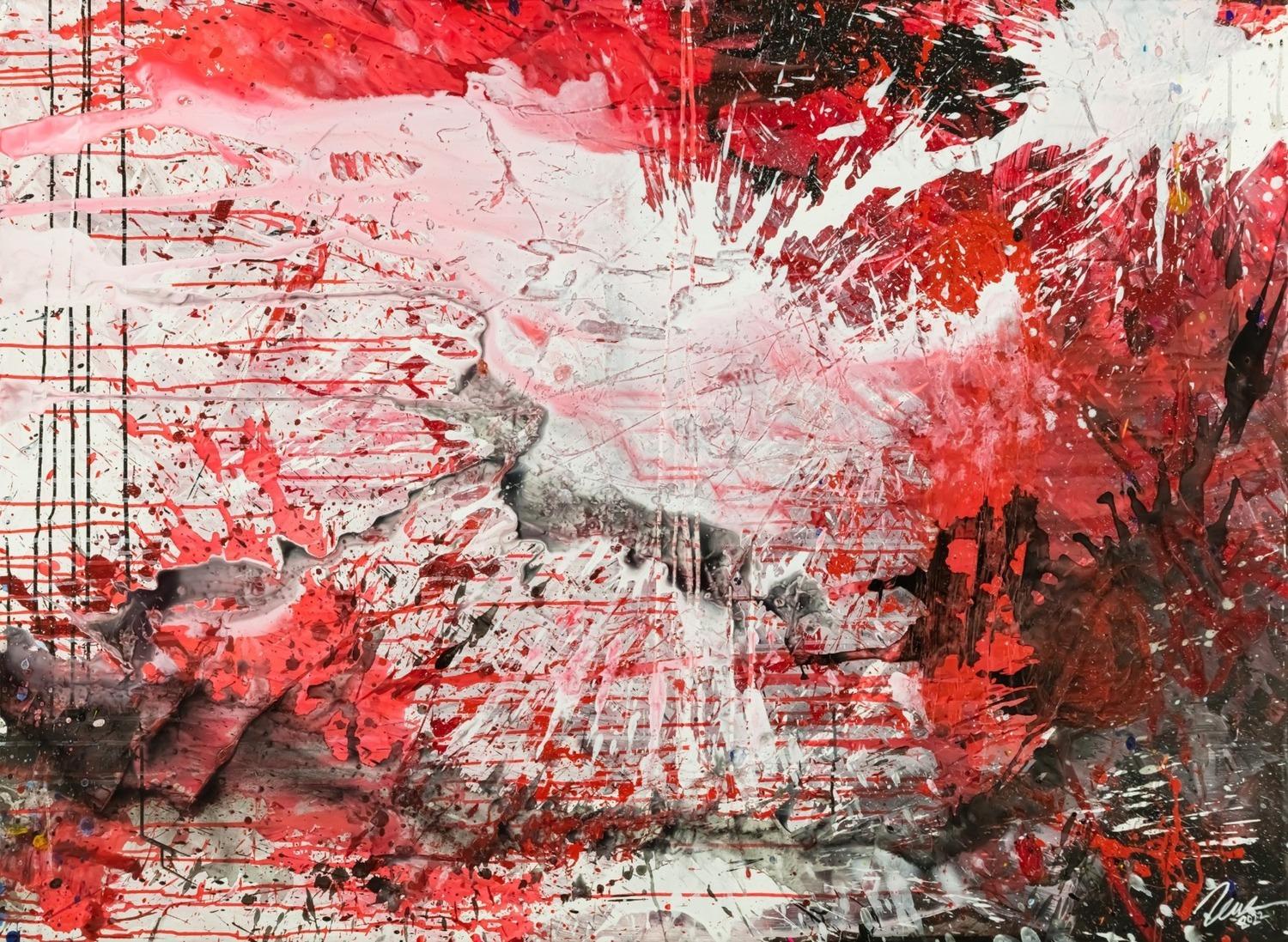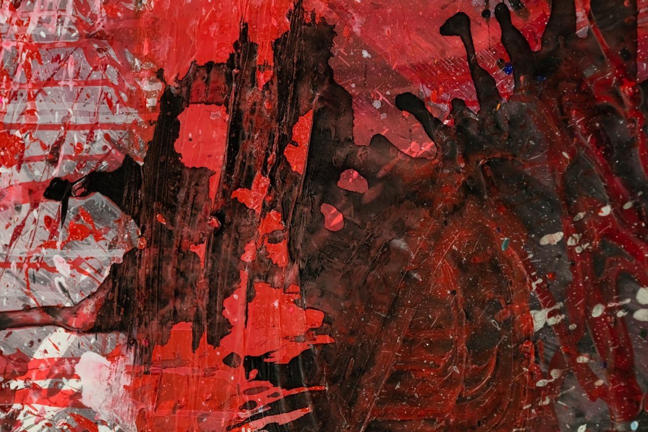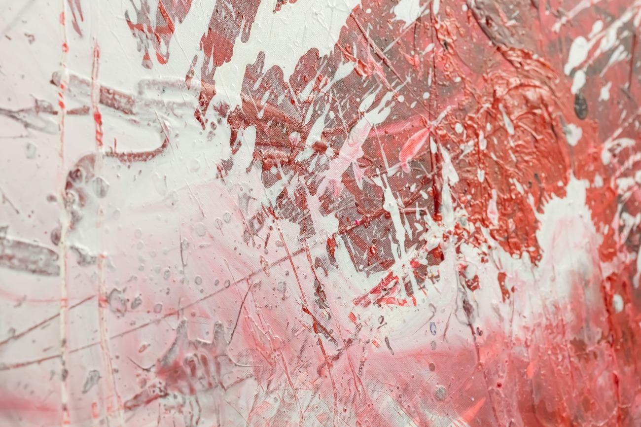 Abstraktes Original Gemälde 110x150cm Action Painting zeitgenössisch handgemalt Mischtechnik weiß rot schwarz einzigartig