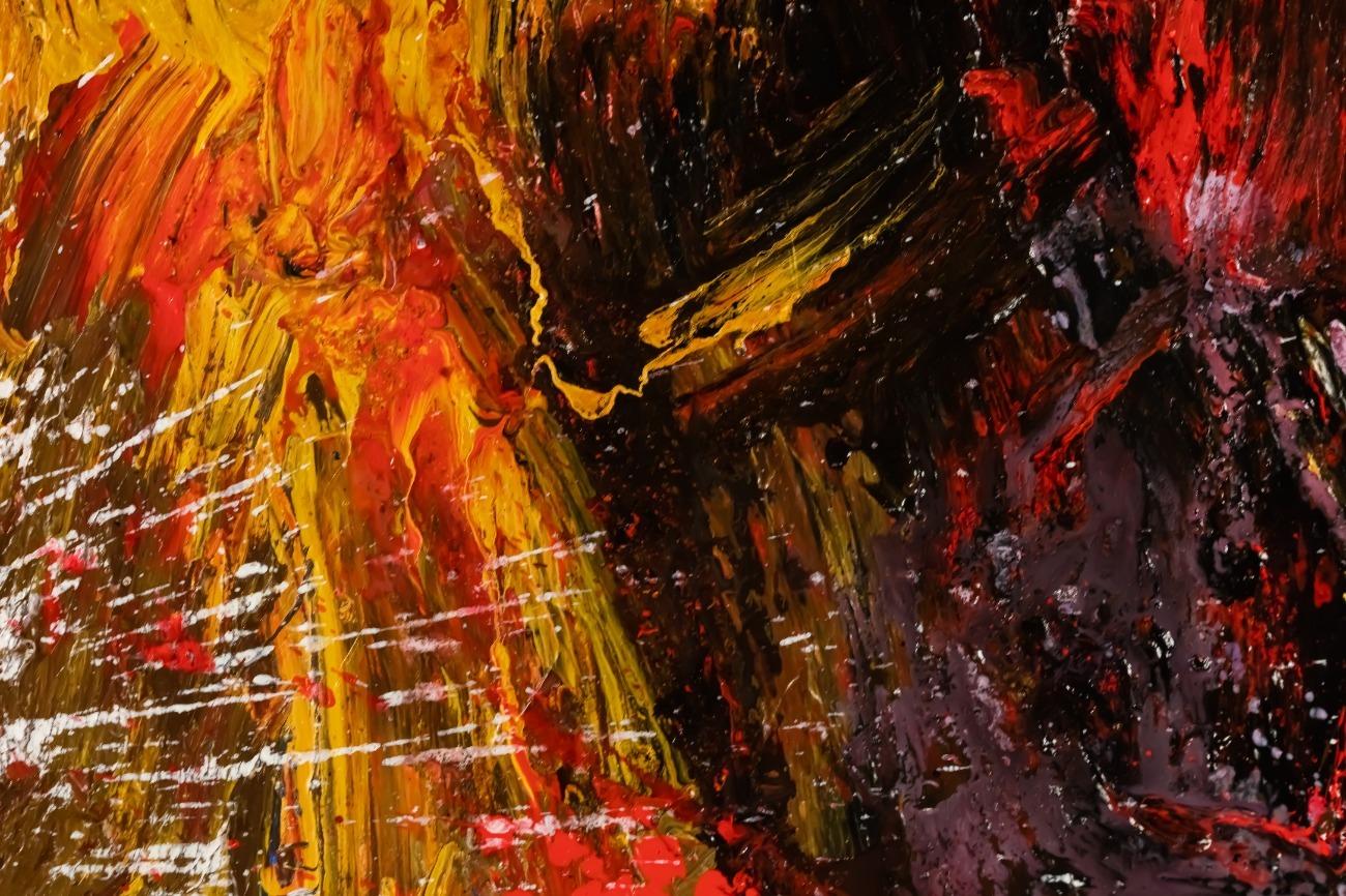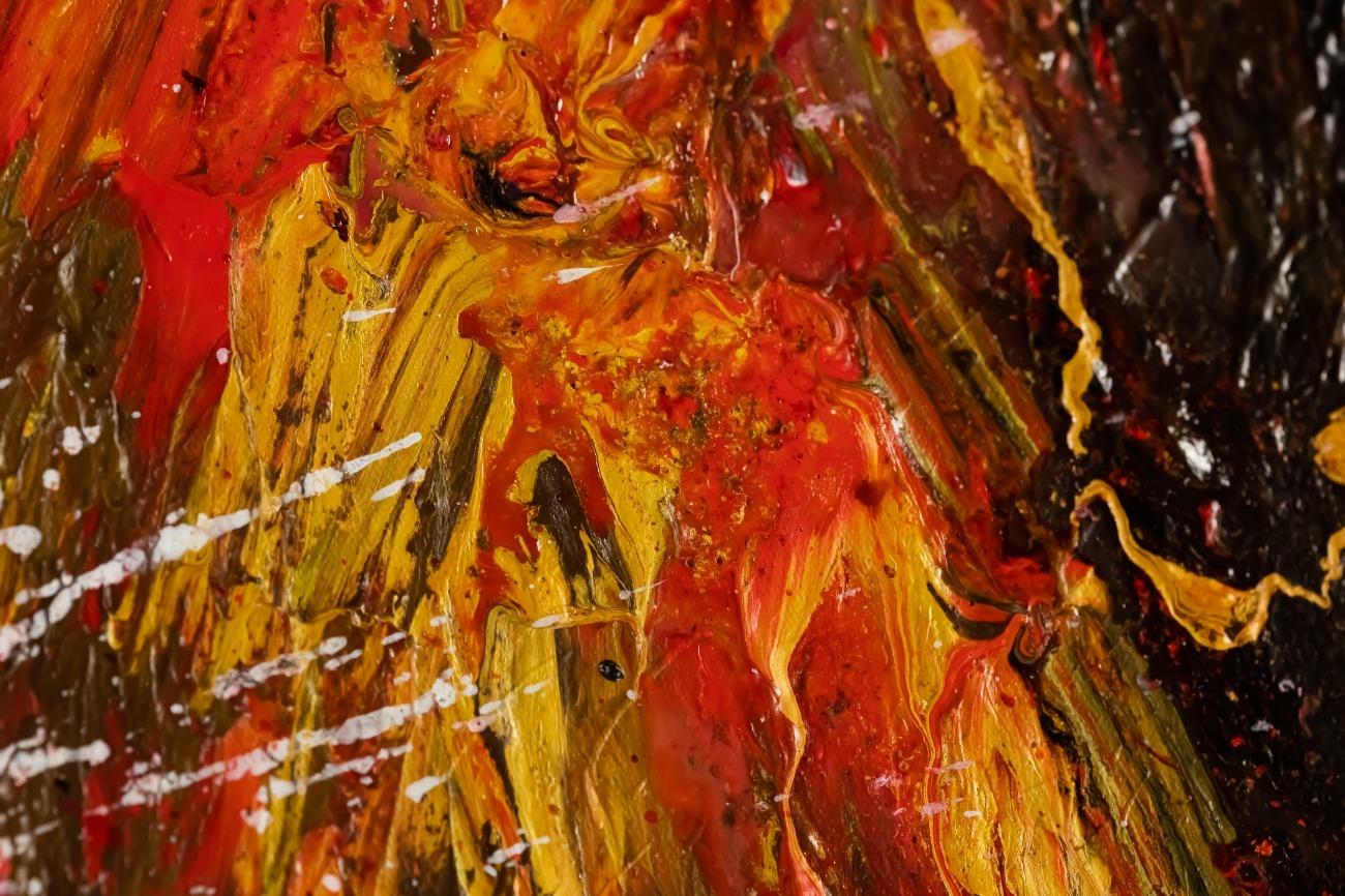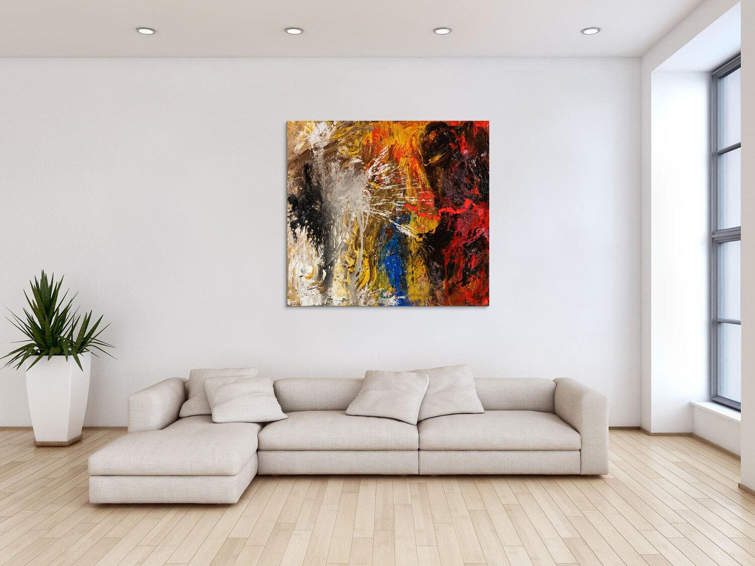 Abstraktes Original Gemälde 120x110cm Action Painting Moderne Kunst handgemalt Mischtechnik schwarz gold rot hochwertig