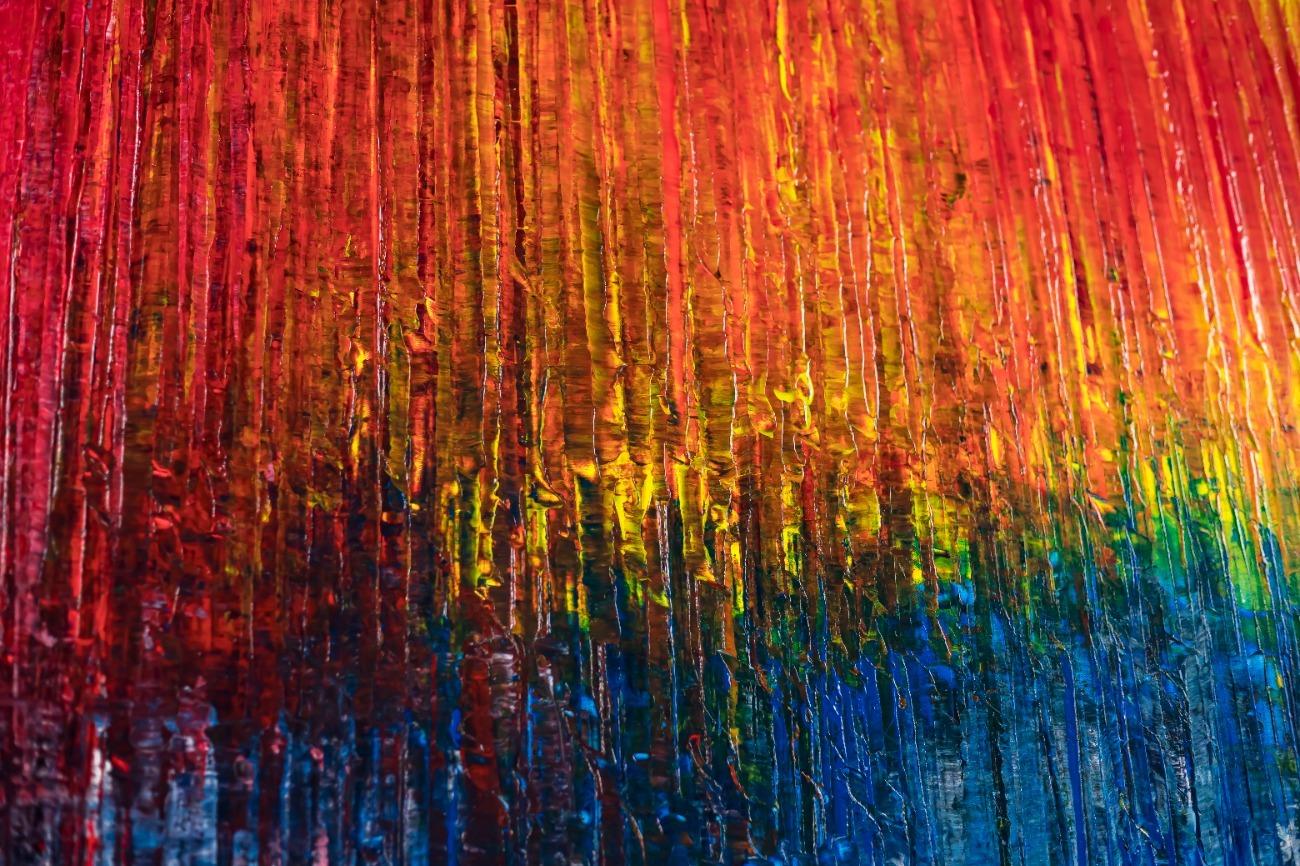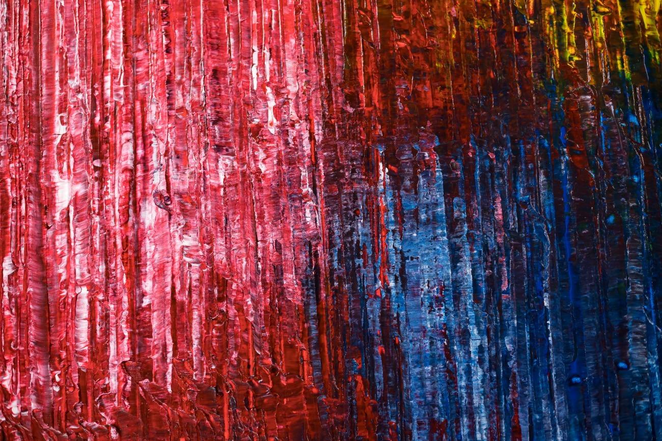 Dieses abstrakte Acrylbild ist ein handgemaltes Original vom Künstler Alex Zerr aus Bad Lisppringe und ist im Jahr 2023 in seinem Atelier entstanden. Das Bild hat eine Größe von 120x190cm und ist bereits auf einem hochwertigen und stabilem Rahmen aufgespannt. Dadurch kann das Bild nach der Lieferung direkt an die Wand gehängt werden und sofort in Ihrem Raum wirken. Alle Seiten des Gemäldes sind passend zum Motiv bemalt, so dass kein zusätzlicher Rahmen benötigt wird.