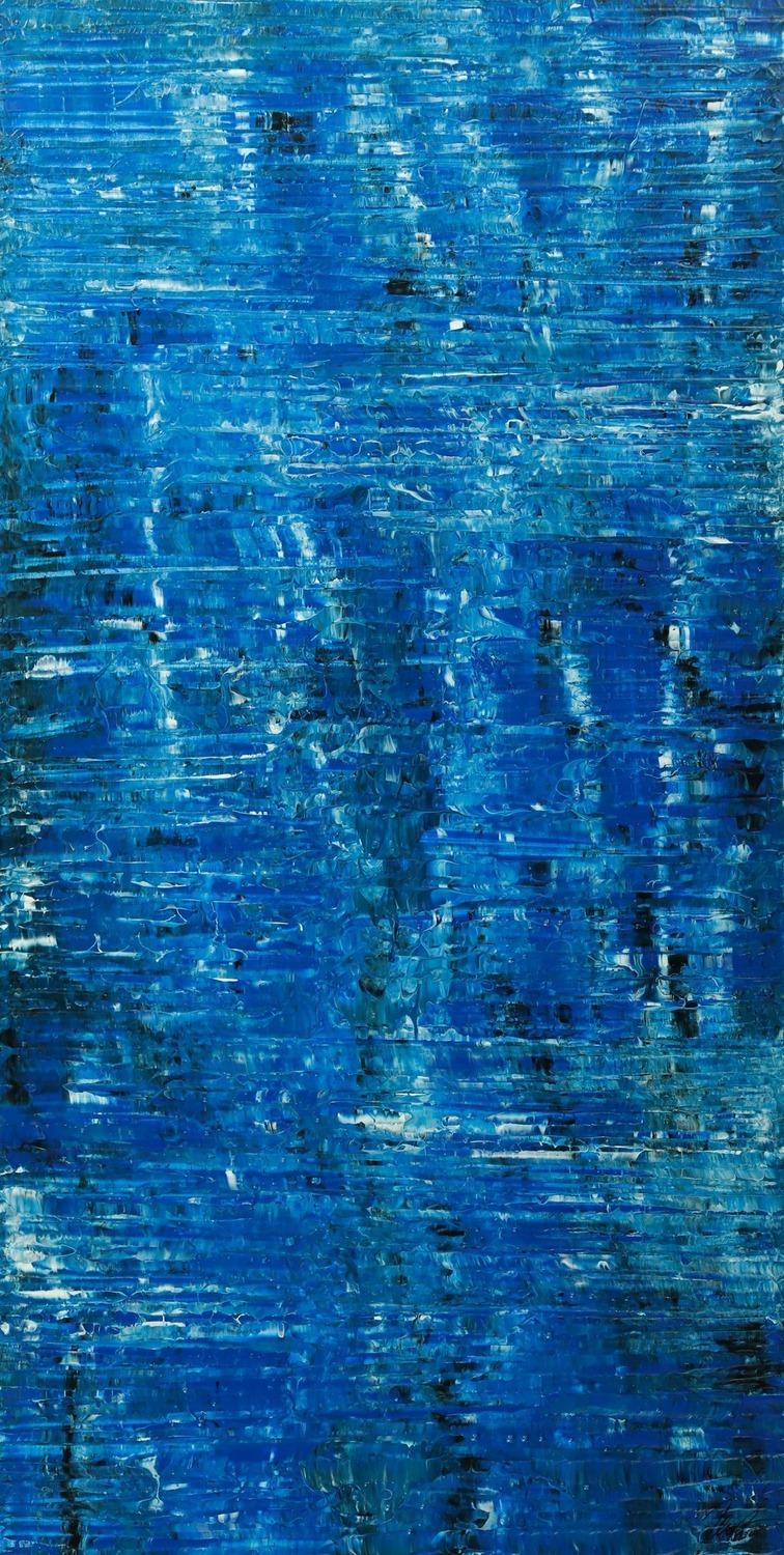 Abstraktes Original Gemälde 200x100cm Spachteltechnik Modern Art auf Leinwand blau hellblau Unikat