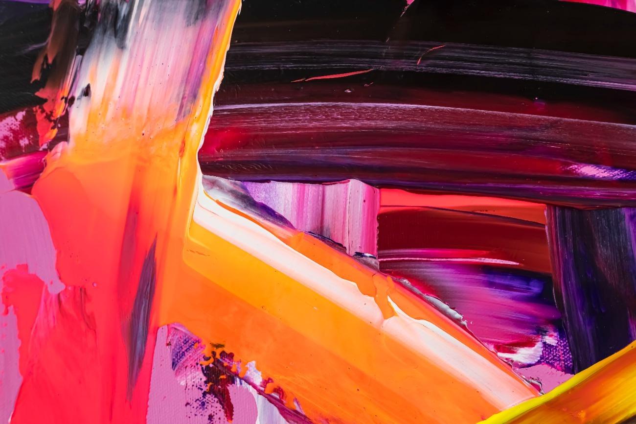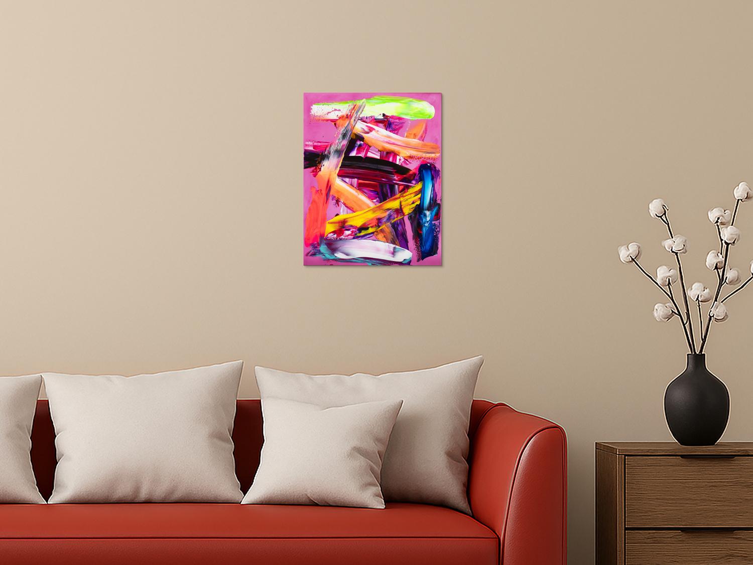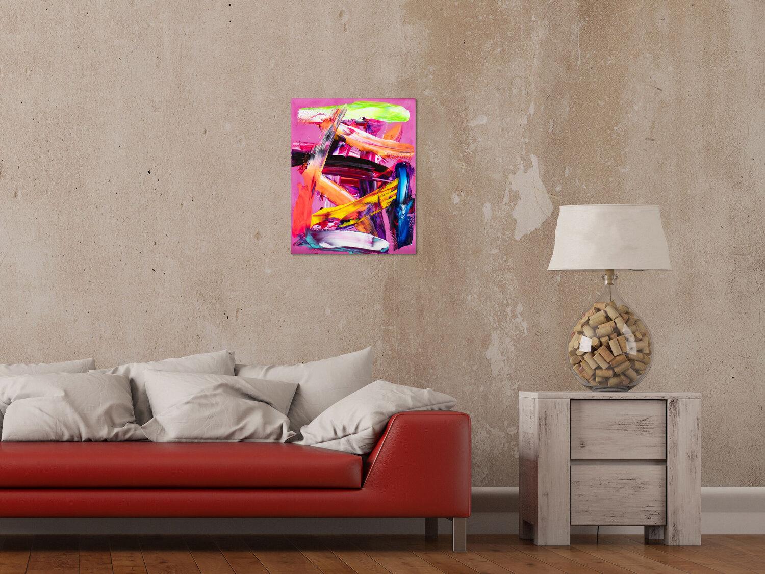Abstraktes Original Gemälde 50x40cm Spachteltechnik Modern Art handgemalt Action Painting rosa orange rot Einzelstück