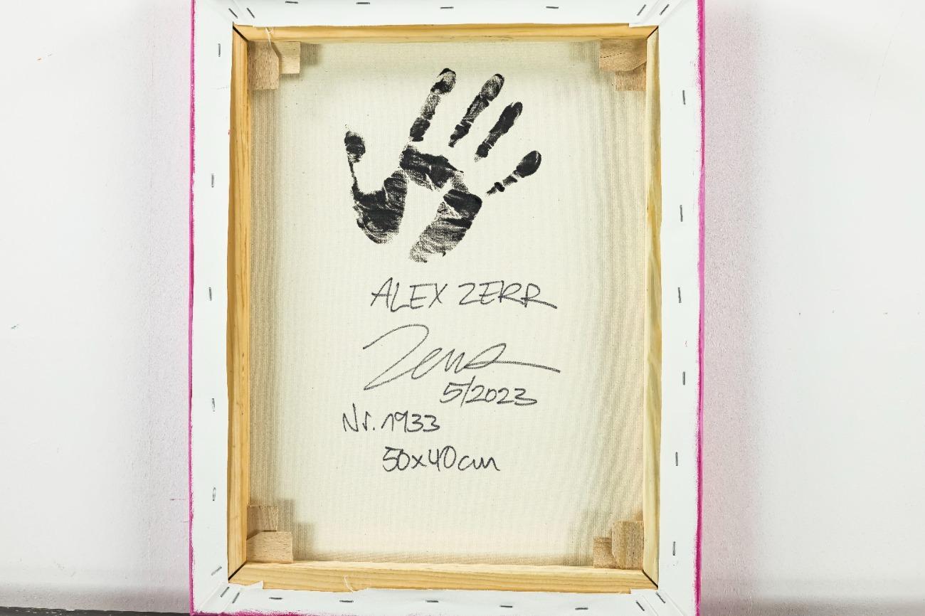 Jedes Gemälde auf xxl-art.de ist ein handgemaltes Original von Alex Zerr, handsigniert und mit seinem Handabdruck auf der Rückseite versehen. Dies garantiert die Authentizität und den Wert des Kunstwerks.