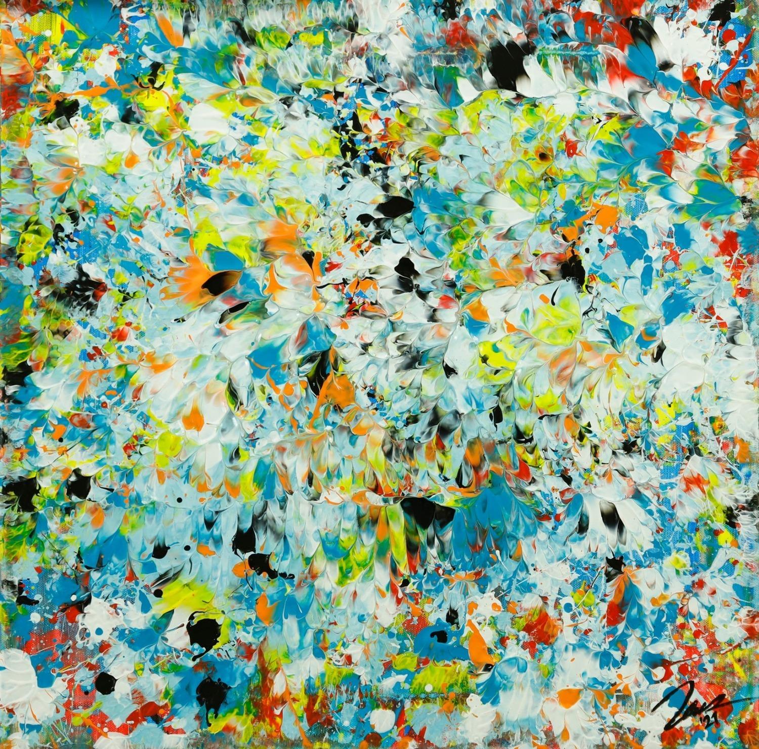 Dieses abstrakte Acrylbild ist ein handgemaltes Original vom Künstler Alex Zerr aus Bad Lisppringe und ist im Jahr 2021 in seinem Atelier entstanden. Das Bild hat eine Größe von 50x50cm und ist bereits auf einem hochwertigen und stabilem Rahmen aufgespannt. Dadurch kann das Bild nach der Lieferung direkt an die Wand gehängt werden und sofort in Ihrem Raum wirken. Alle Seiten des Gemäldes sind passend zum Motiv bemalt, so dass kein zusätzlicher Rahmen benötigt wird.
