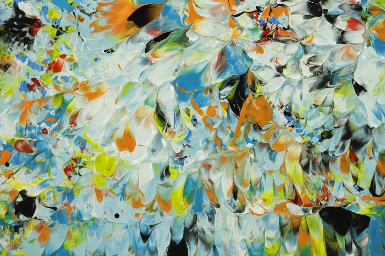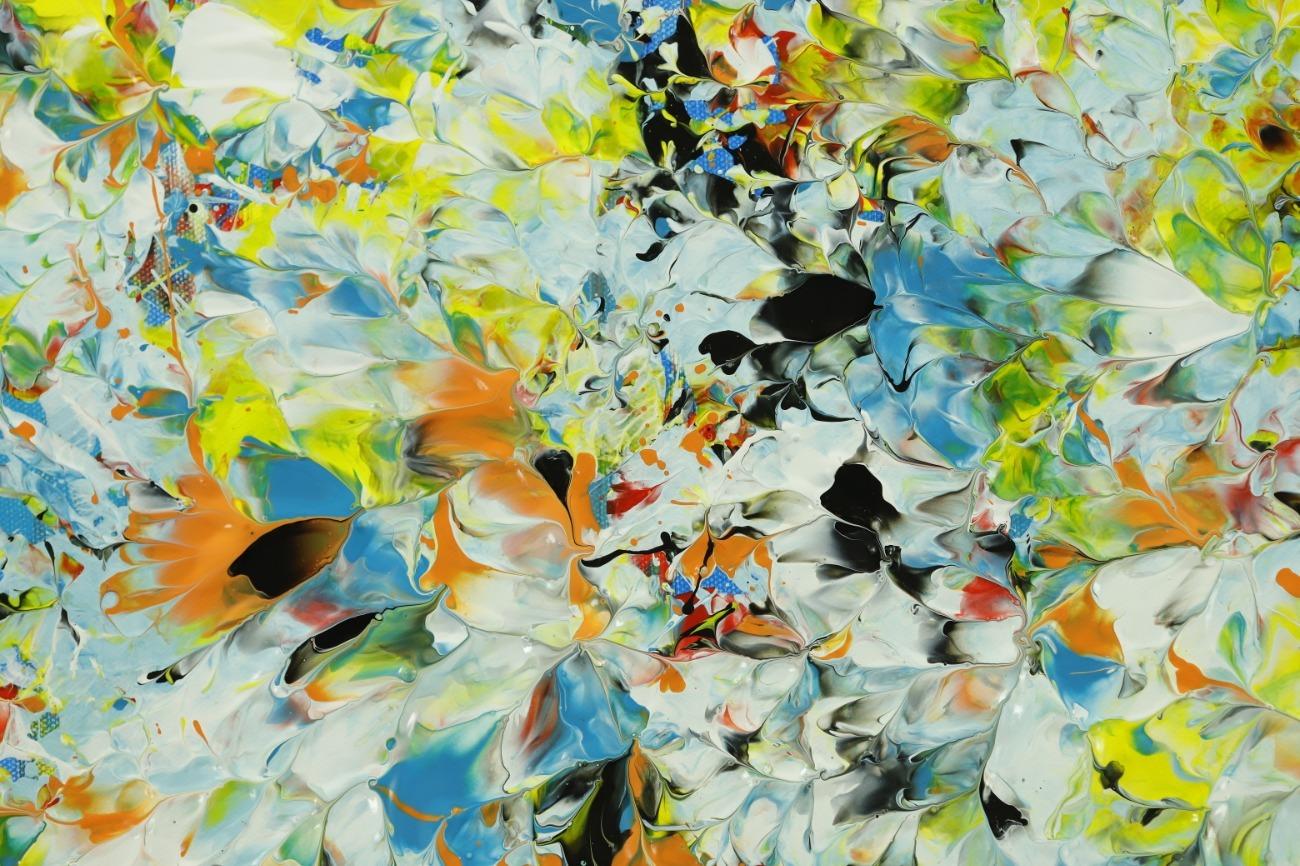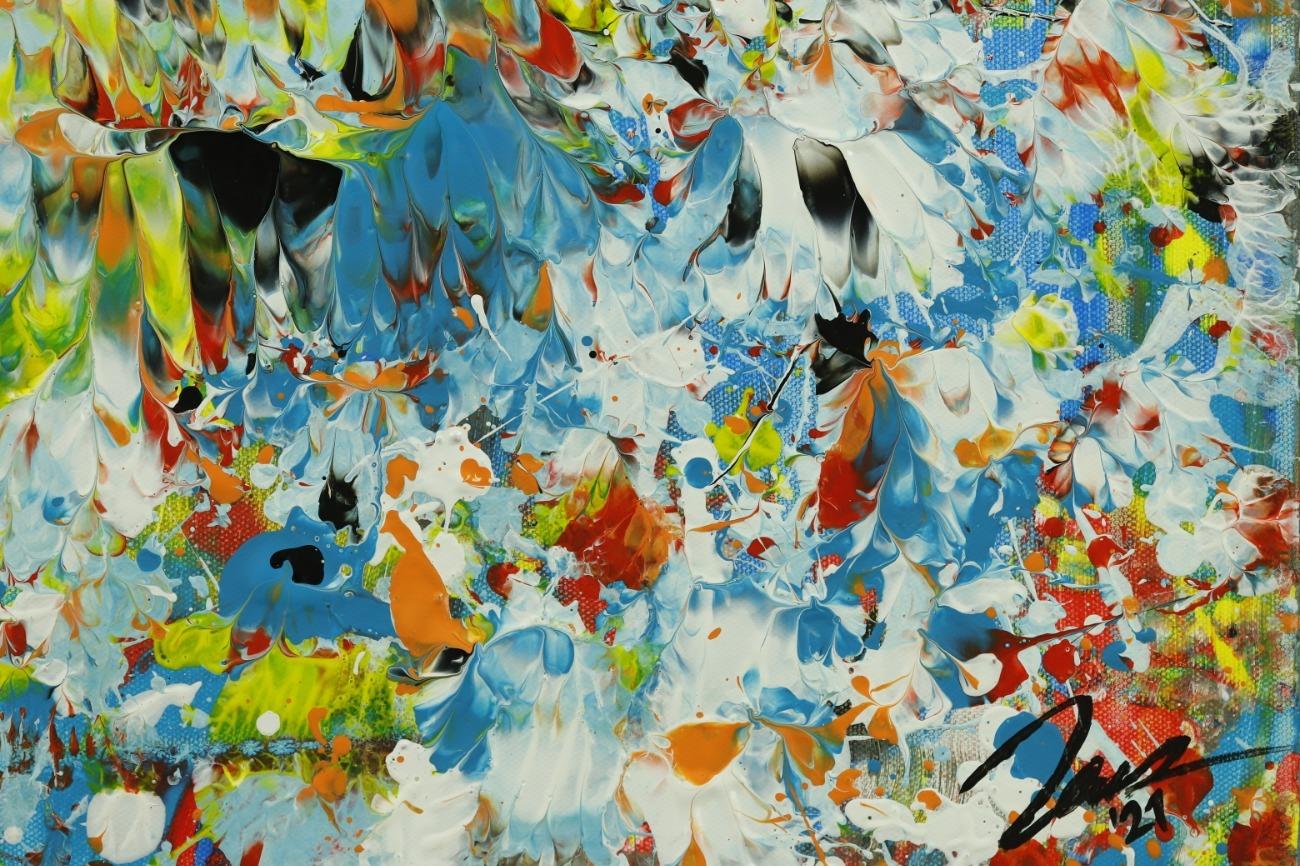 Hallo, ich bin Alex Zerr, der Künstler hinter diesem Gemälde. In meinem Atelier in Bad Lippspringe erschaffe ich abstrakte Acrylbilder, überwiegend im Action-Painting-Stil. Meißtens mit Acrylfarben und auf sehr großen XXL-Leinwänden, die meinem kreativen Prozess besonders viel Freiheit erlauben und oft zu beeindruckenden Gemälden führen.