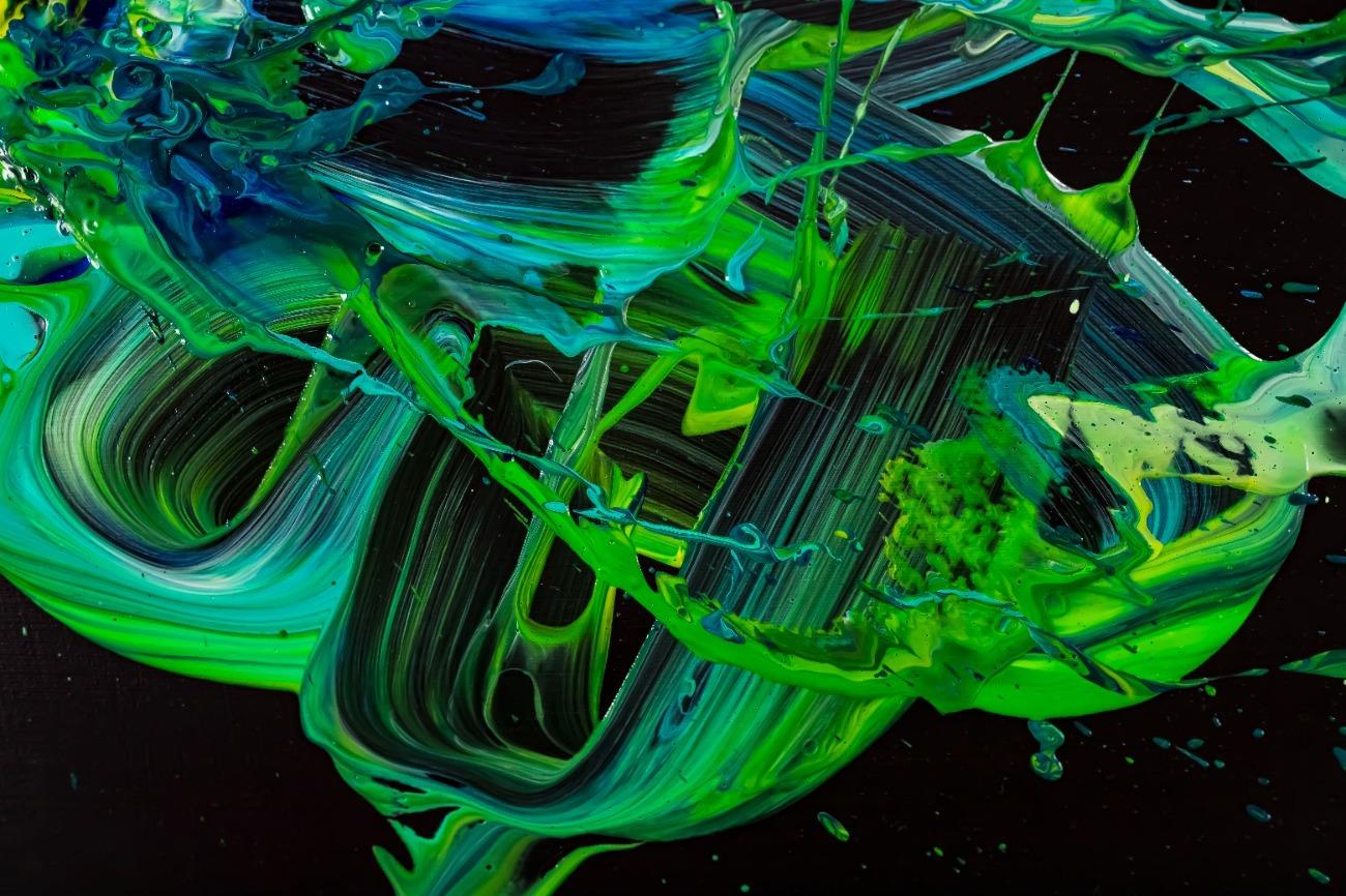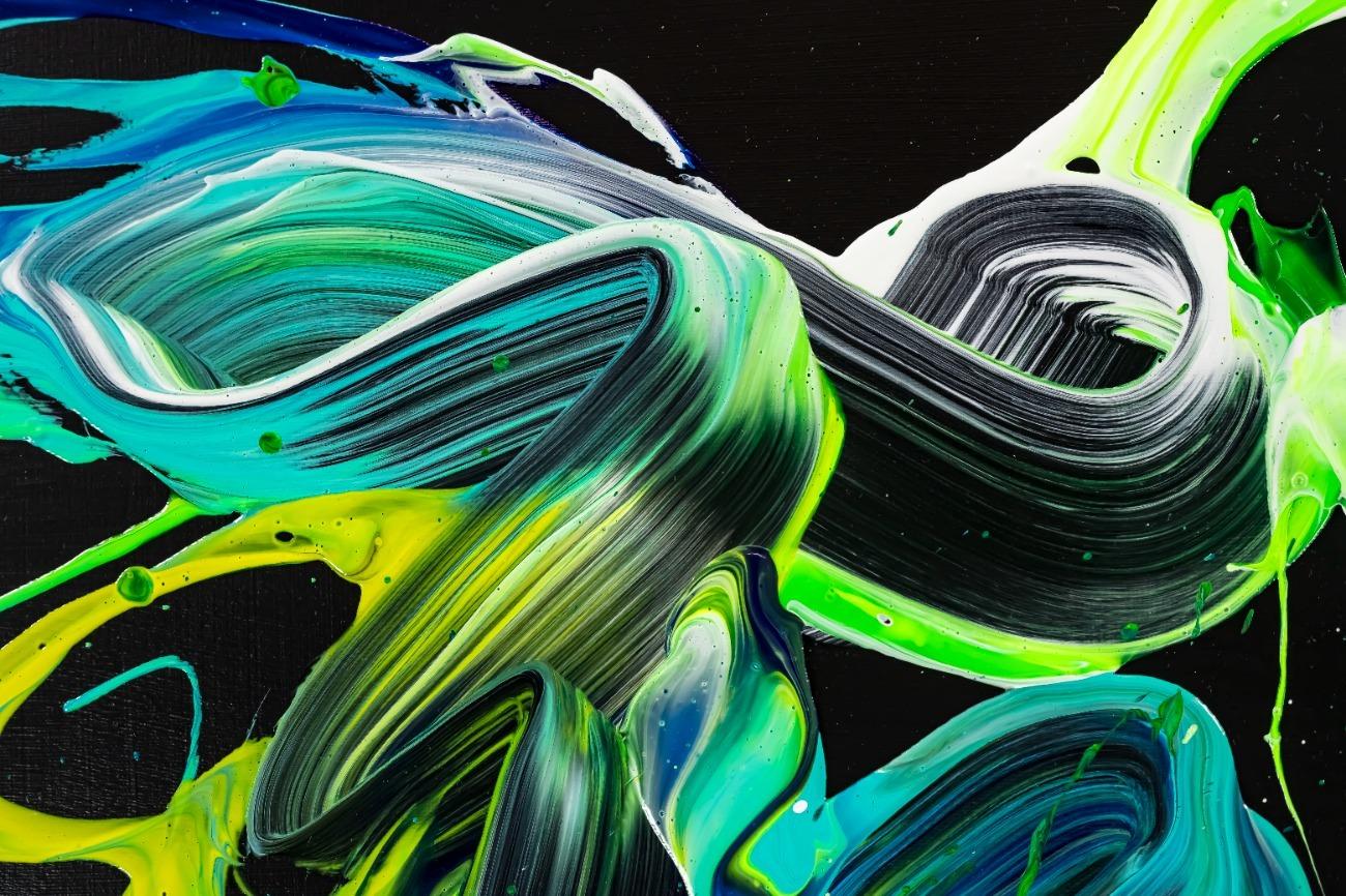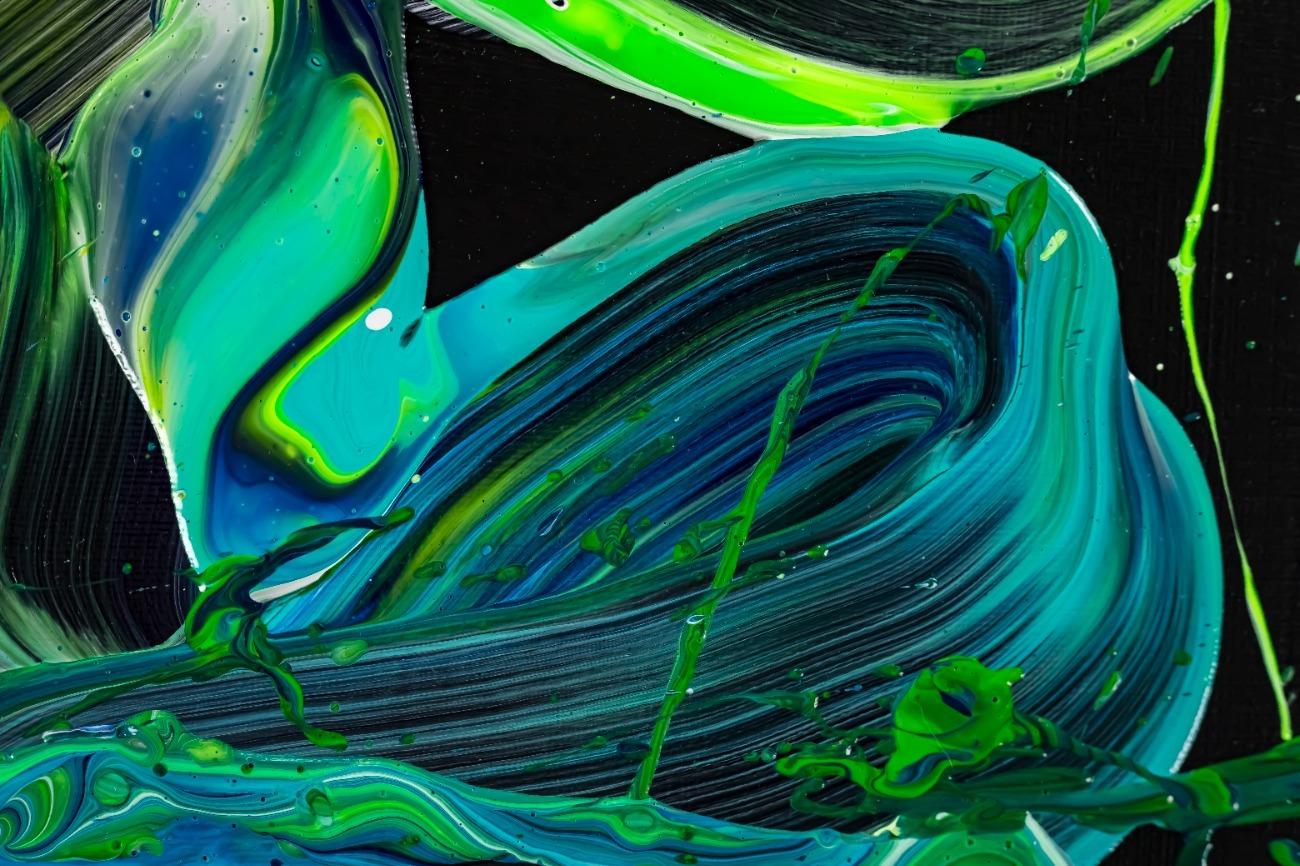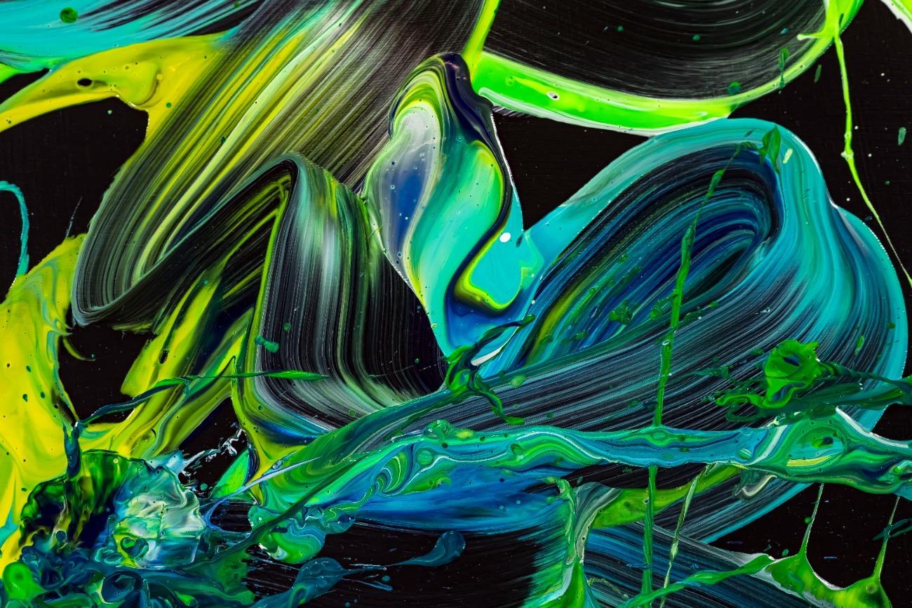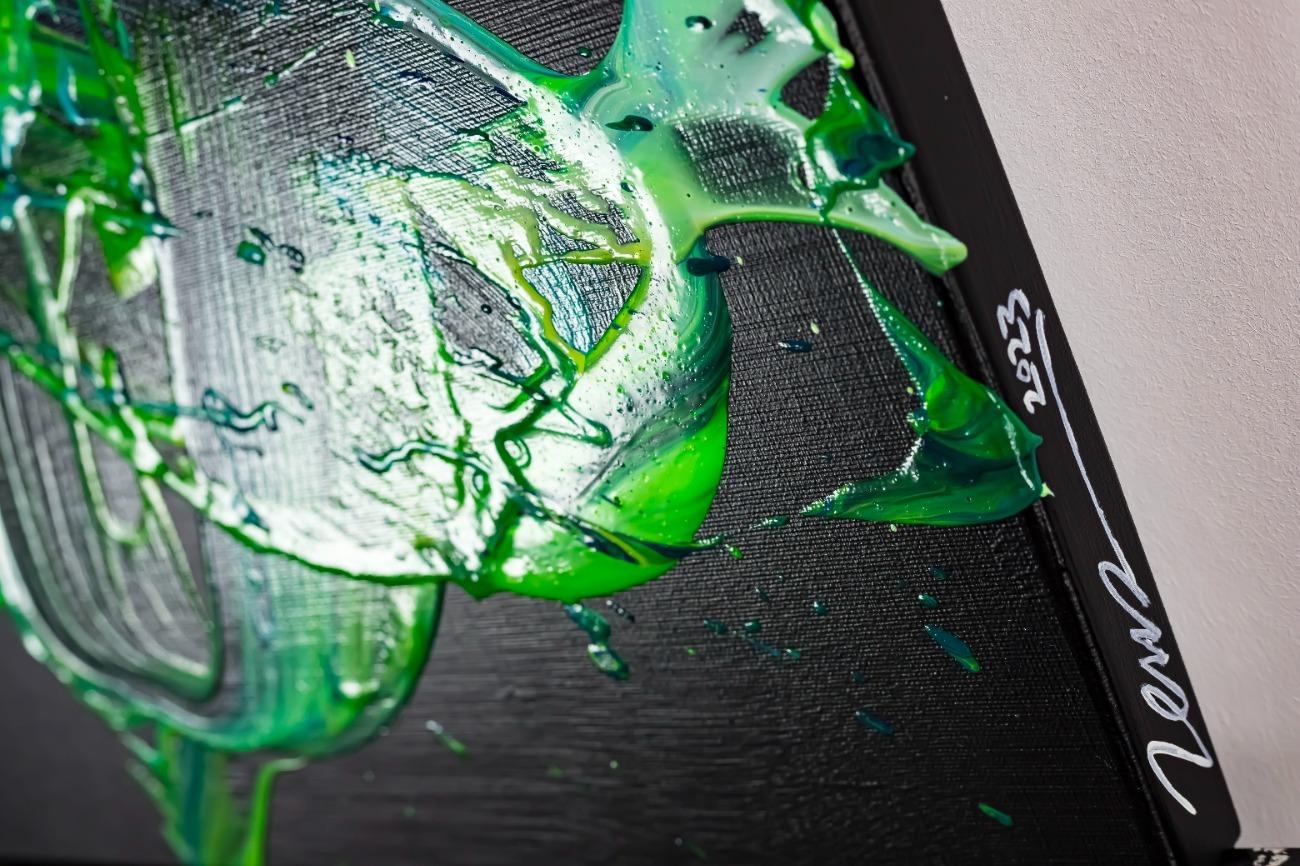 Abstraktes Original Gemälde 70x50cm Action Painting Modern Art handgemalt Fluid Painting schwarz türkis grün Einzelstück