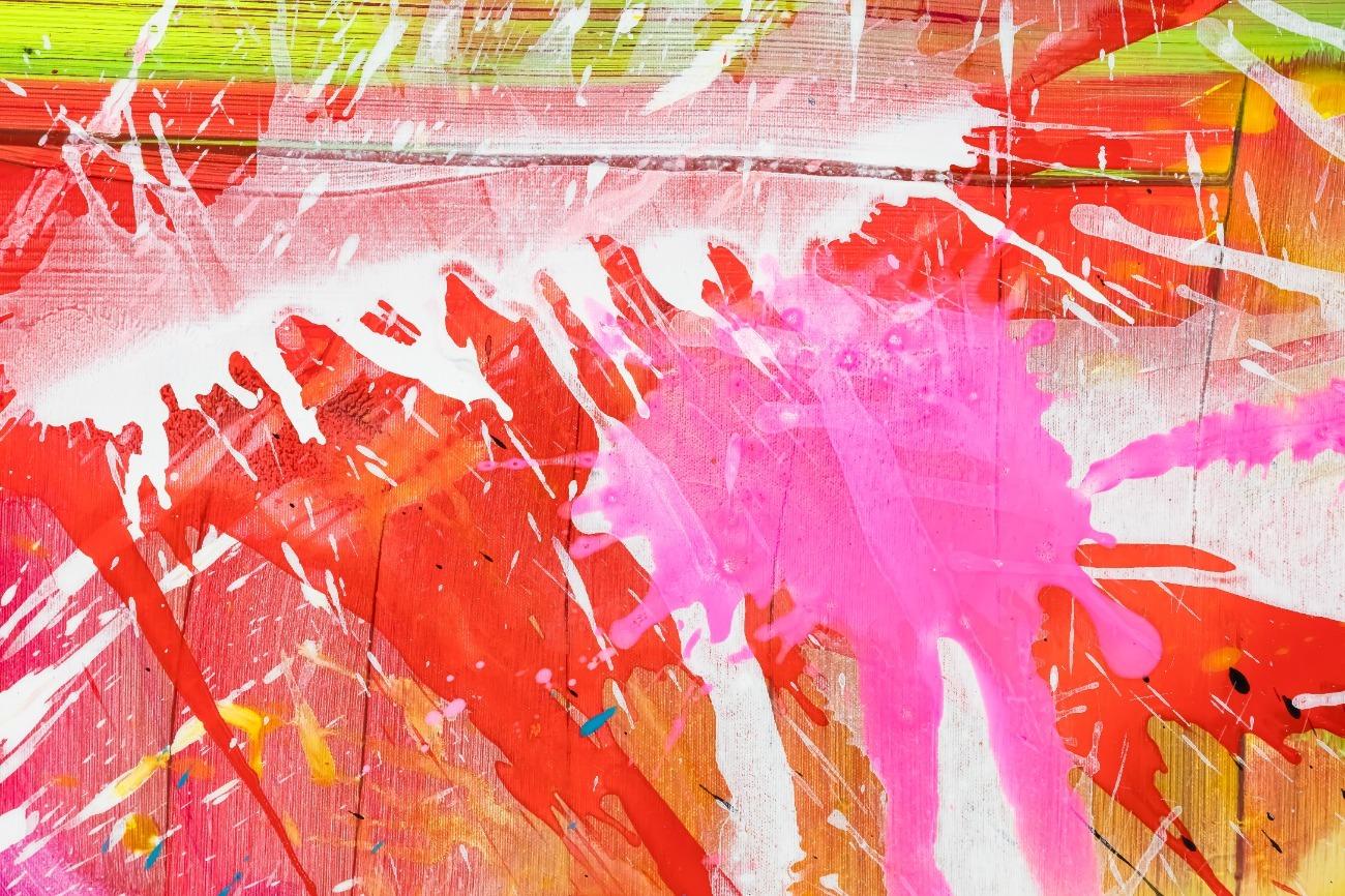 Abstraktes Original Gemälde 80x150cm Action Painting Modern Art handgemalt Splash Art weiß gelb pink hochwertig