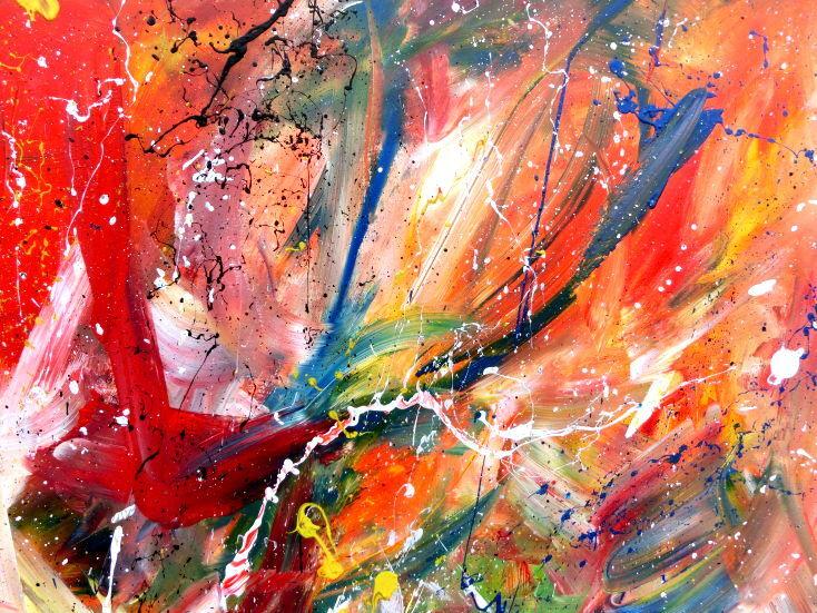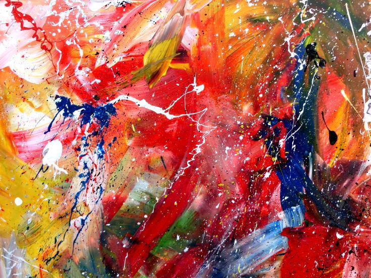 Abstraktesa Acrylbild mit vielen bunten Farben sehr modern