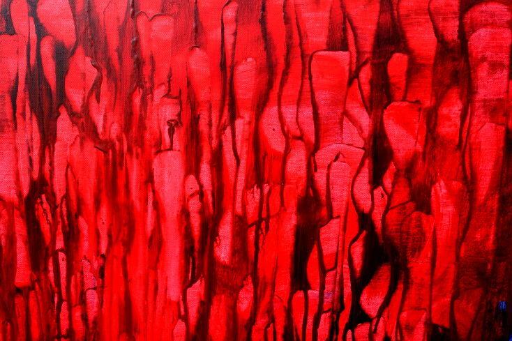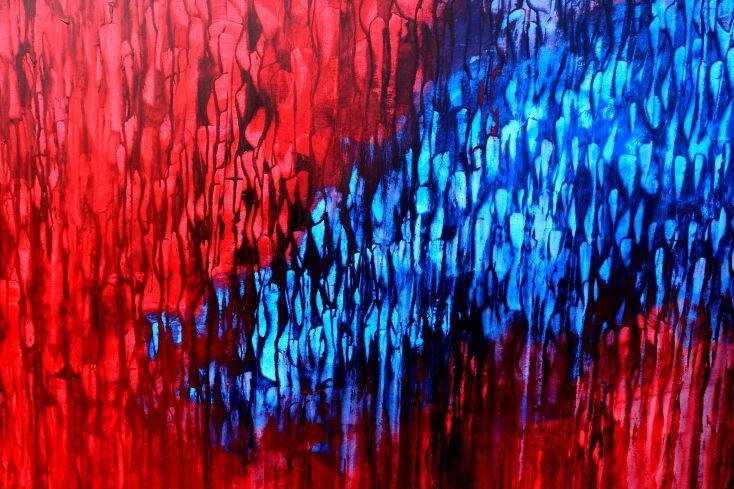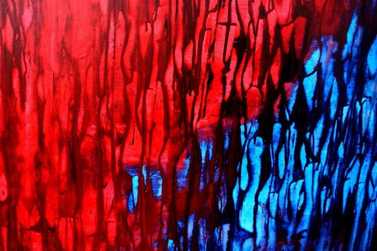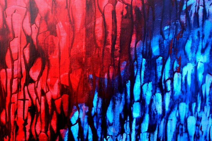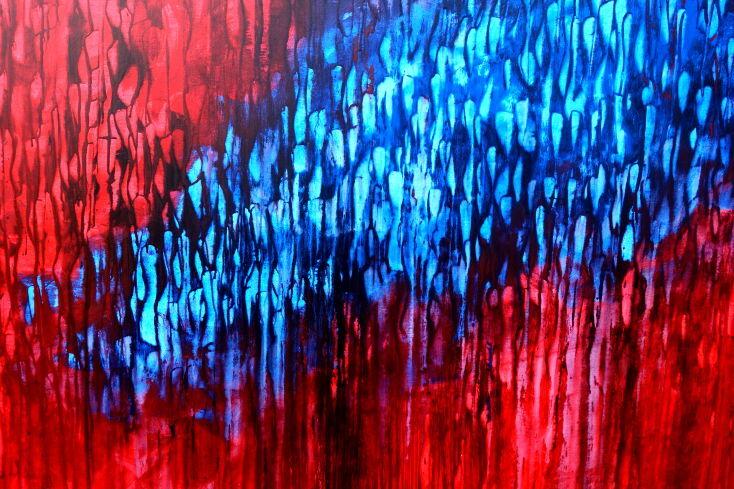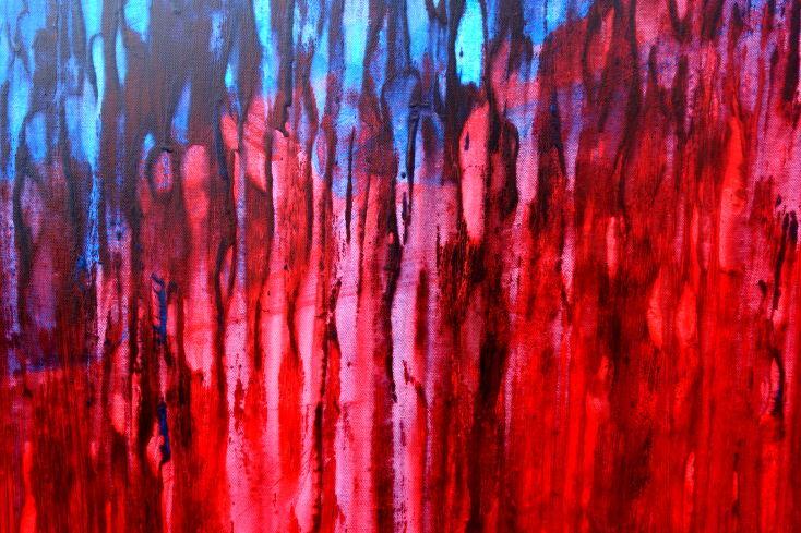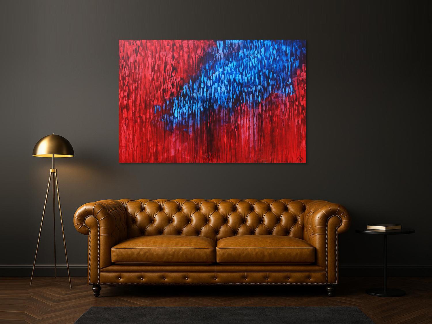 Acryl Bild abstrakt modern in rot blau zeitgenössisch handgemalt