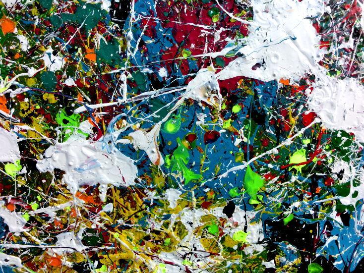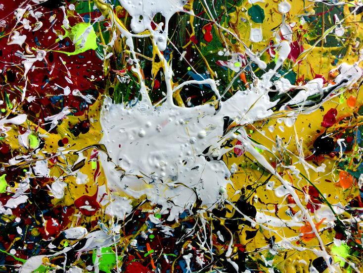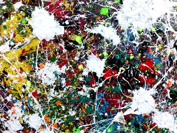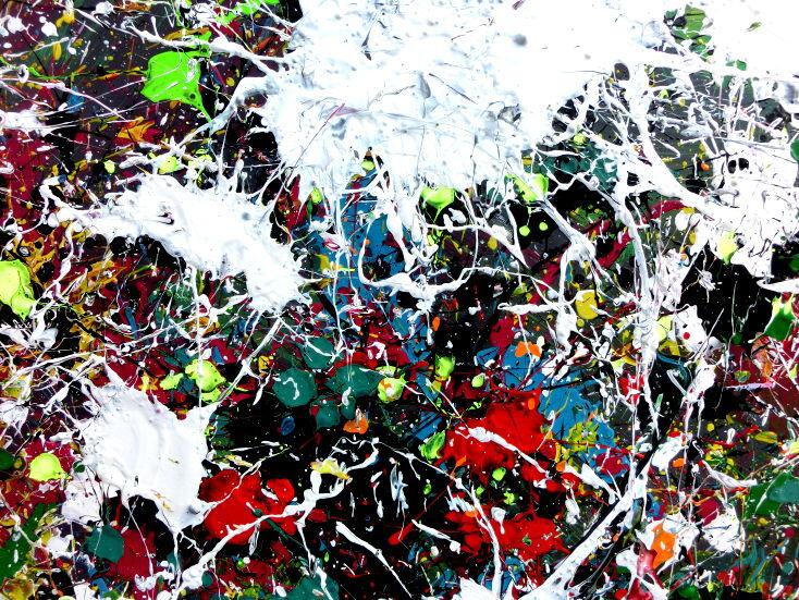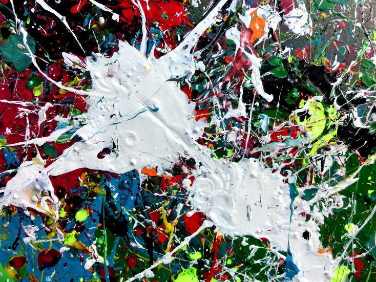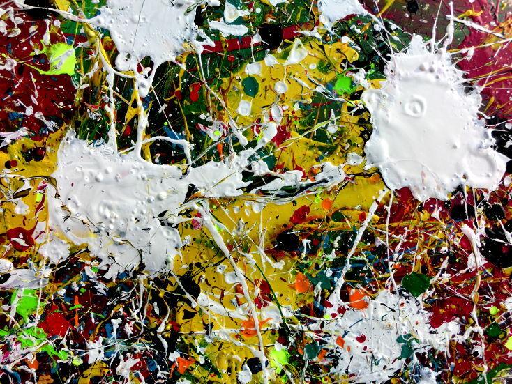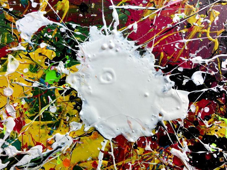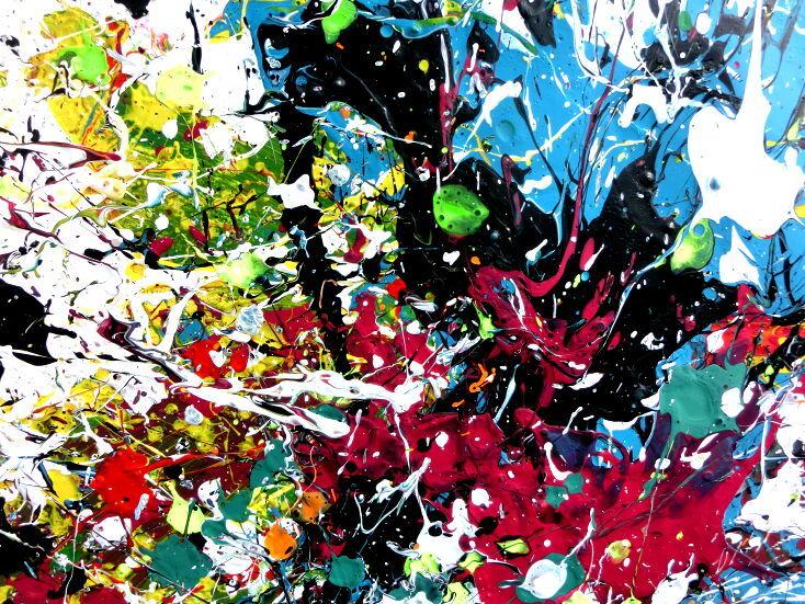 Buntes Abstraktes Acrylbild Action Painting viele Flecken auf Leinwand sehr modern