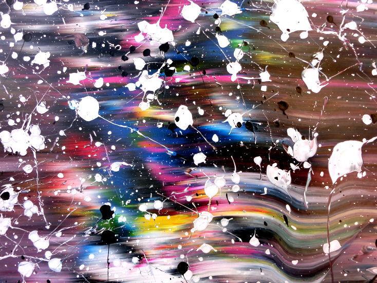 Buntes abstraktes Acrylbild in Spachteltechnik und weißen Flecken sehr modern
