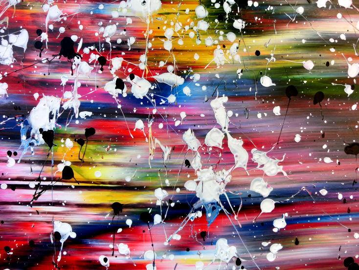 Hallo, ich bin Alex Zerr, der Künstler hinter diesem Gemälde. In meinem Atelier in Bad Lippspringe erschaffe ich abstrakte Acrylbilder, überwiegend im Action-Painting-Stil. Meißtens mit Acrylfarben und auf sehr großen XXL-Leinwänden, die meinem kreativen Prozess besonders viel Freiheit erlauben und oft zu beeindruckenden Gemälden führen.