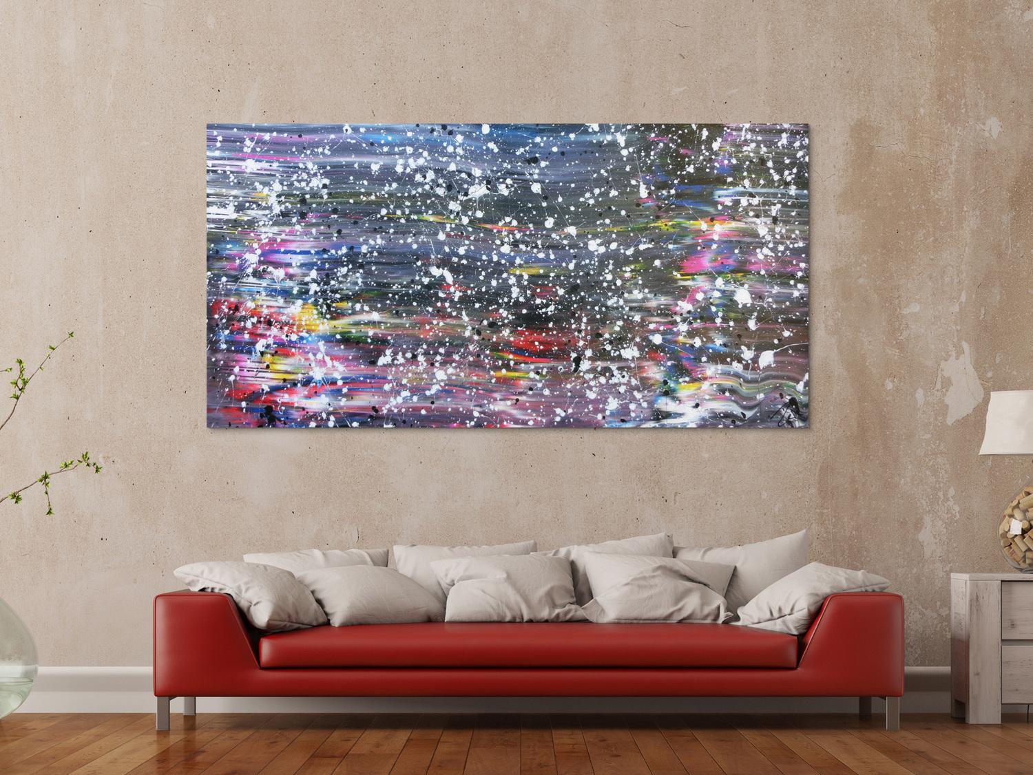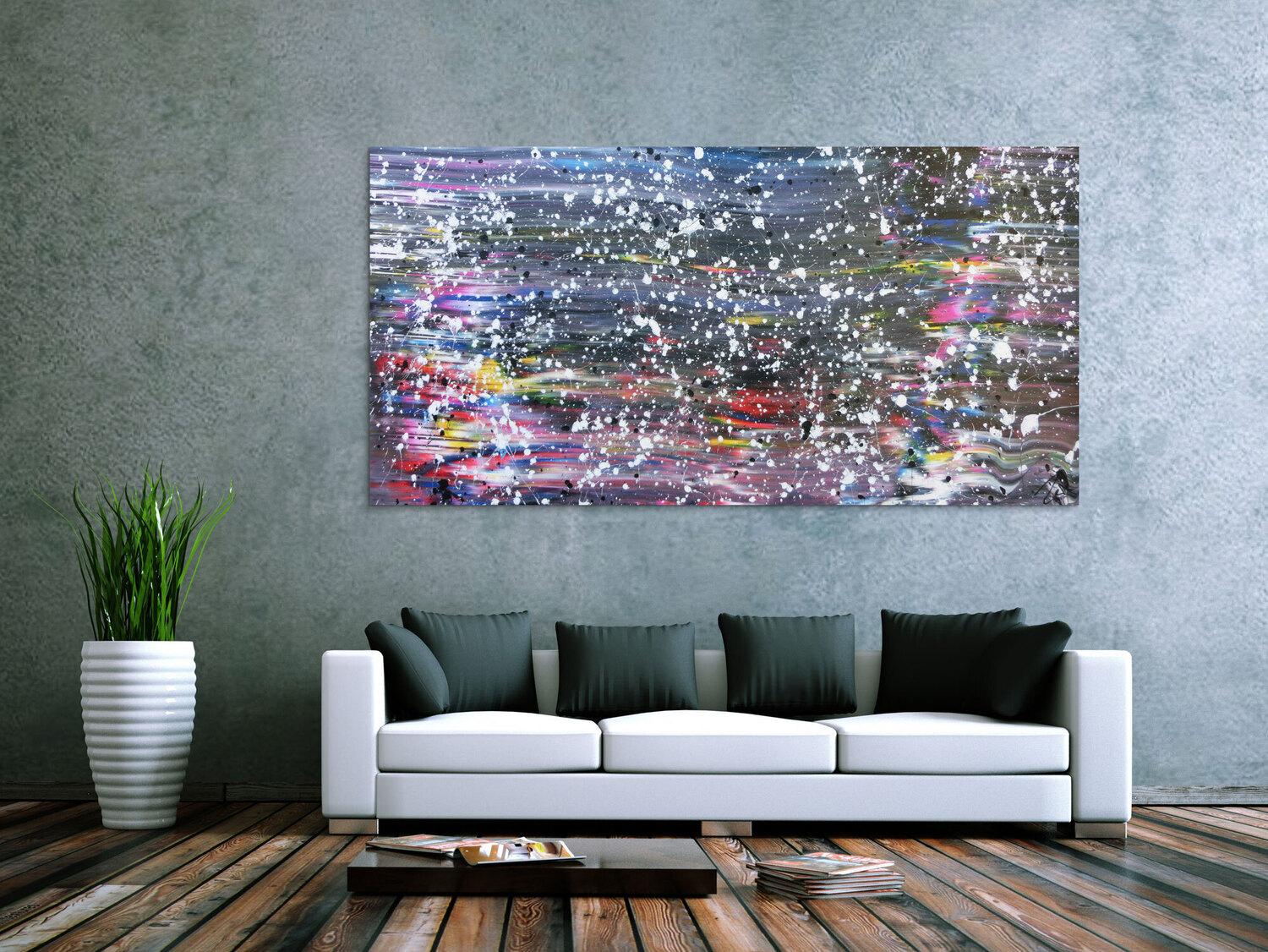 Abstraktes Gemälde auf Leinwand Buntes abstraktes Acrylbild in Spachteltechnik und weißen Flecken sehr modern in 100x200cm von Alex Zerr