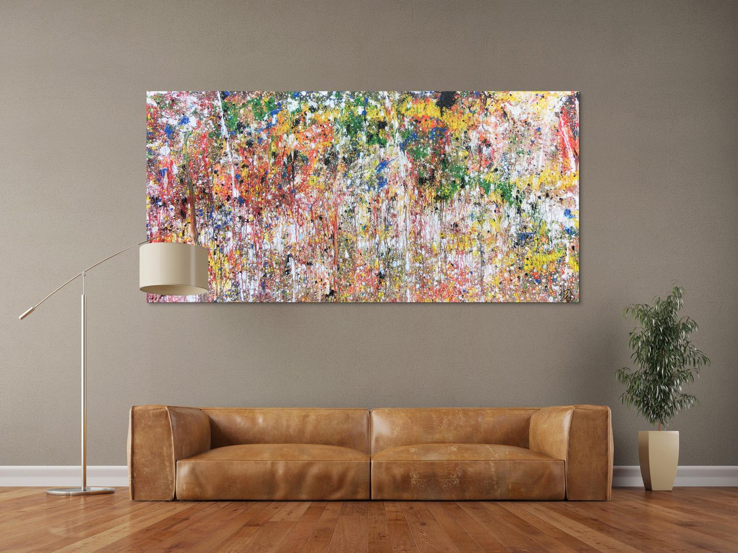 Abstraktes Gemälde auf Leinwand Buntes abstraktes Acrylbild modern mit vielen Farben in 100x200cm von Alex Zerr