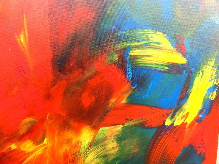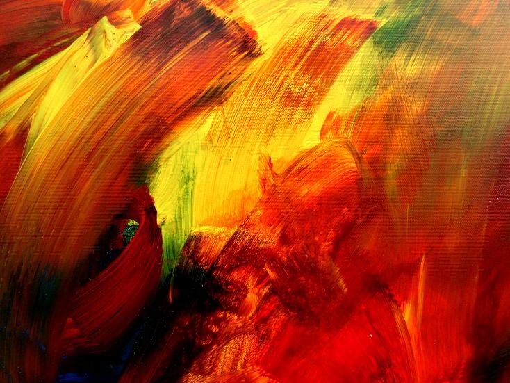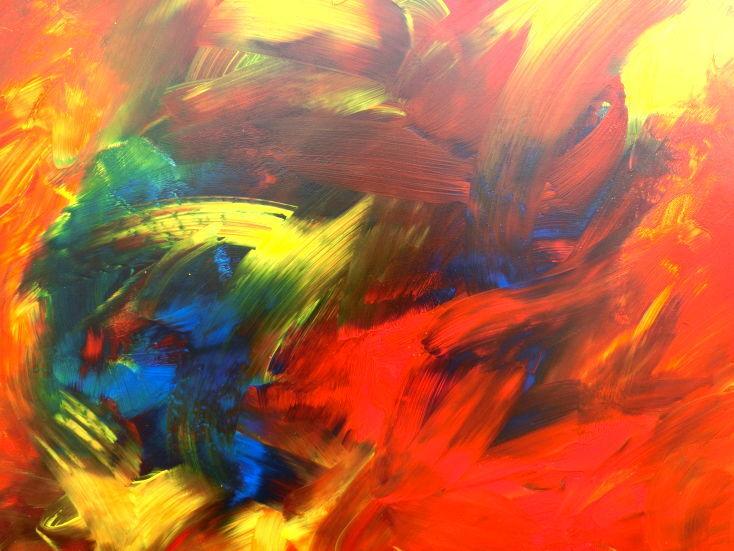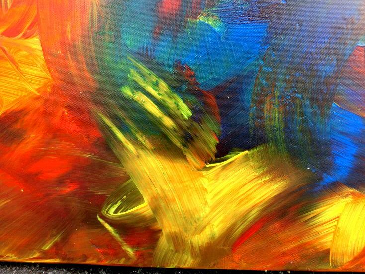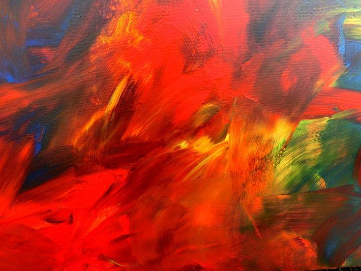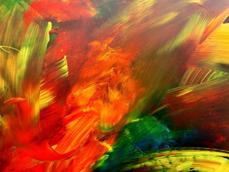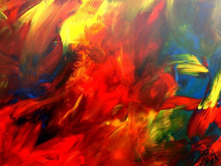 Dieses Werk ist wie alle meine Bilder: spontan entstanden, ganz intuitiv und ohne festes Konzept, und spiegelt oft meine momentane Stimmung wider wie auf der Leinwand festgehalten wurde.