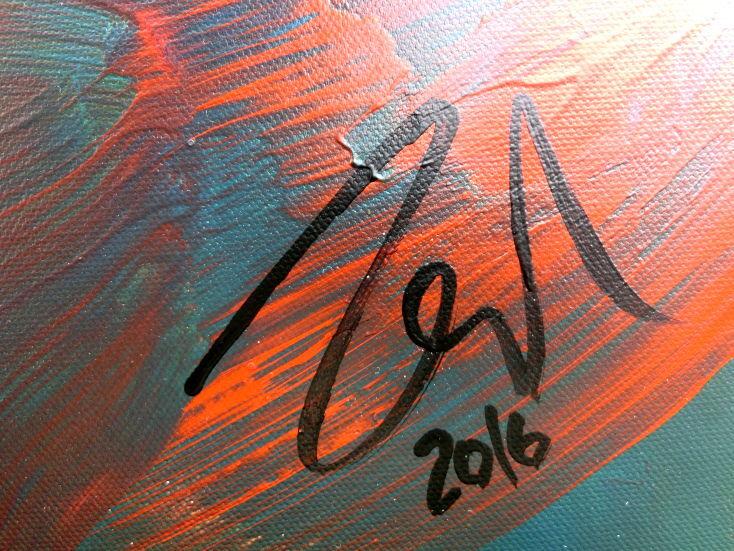 Das Bild ist vom Künster Alex Zerr auf der Vorderseite signiert ggf. ist auf der Rückseite des Bildes der Handabdruck des Künstlers zu finden. Dadurch erhält das Bild ein nicht zu kopierendes und persönliches "Siegel", wodurch Ihnen die Echtheit garantiert wird.