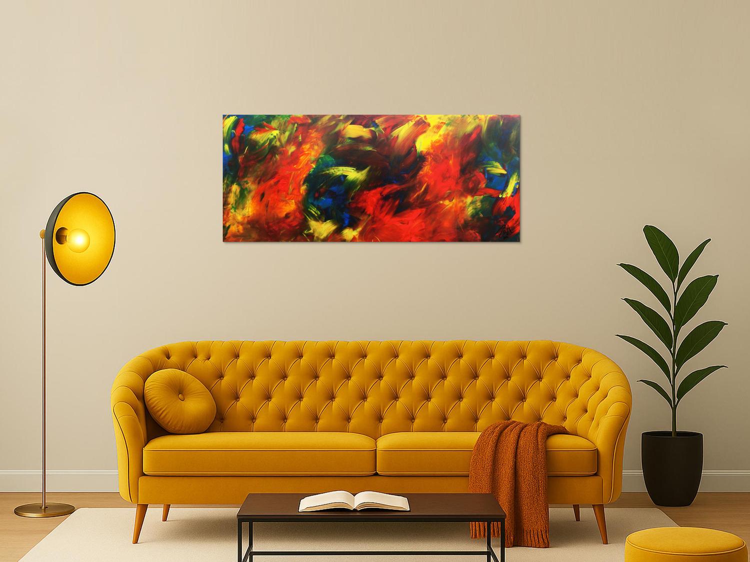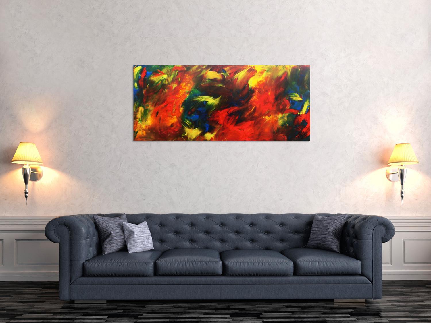 Abstraktes Gemälde auf Leinwand Buntes abstraktes Acrylbild moderne Malerei mit vielen Farben in 60x140cm von Alex Zerr