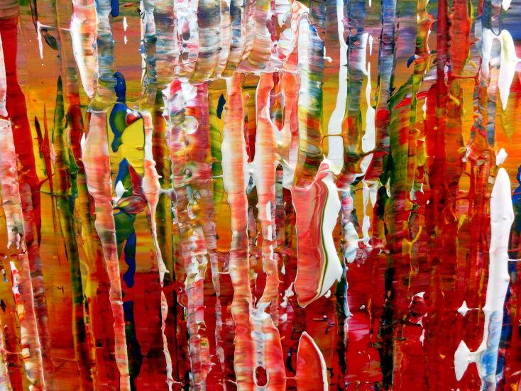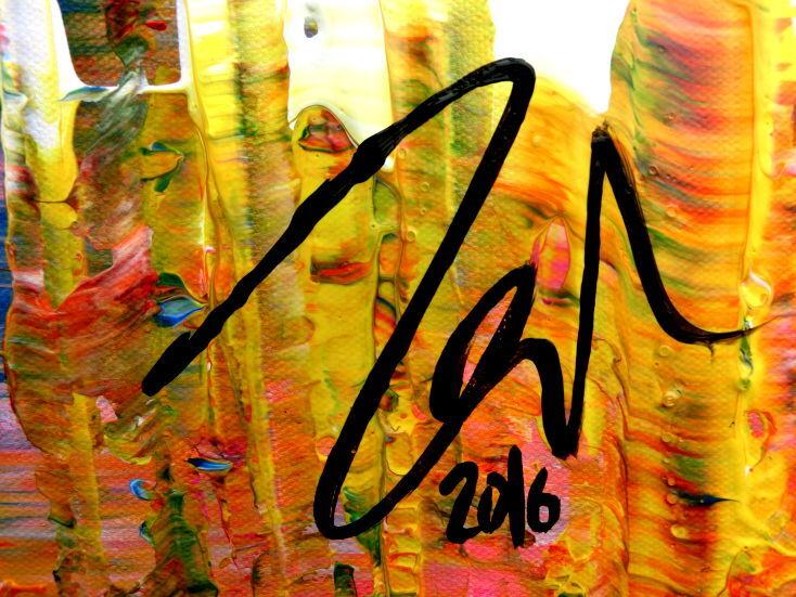 Dieses abstrakte Acrylbild ist ein handgemaltes Original vom Künstler Alex Zerr aus Bad Lisppringe und ist im Jahr 2016 in seinem Atelier entstanden. Das Bild hat eine Größe von 150x200cm und ist bereits auf einem hochwertigen und stabilem Rahmen aufgespannt. Dadurch kann das Bild nach der Lieferung direkt an die Wand gehängt werden und sofort in Ihrem Raum wirken. Alle Seiten des Gemäldes sind passend zum Motiv bemalt, so dass kein zusätzlicher Rahmen benötigt wird.