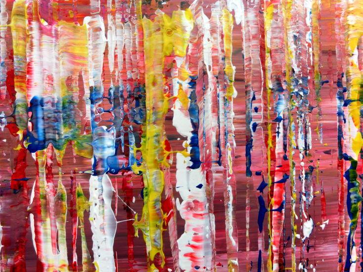 Hallo, ich bin Alex Zerr, der Künstler hinter diesem Gemälde. In meinem Atelier in Bad Lippspringe erschaffe ich abstrakte Acrylbilder, überwiegend im Action-Painting-Stil. Meißtens mit Acrylfarben und auf sehr großen XXL-Leinwänden, die meinem kreativen Prozess besonders viel Freiheit erlauben und oft zu beeindruckenden Gemälden führen.