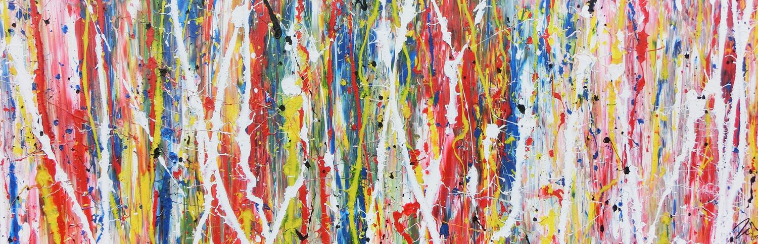 Abstraktes Gemälde auf Leinwand Buntes abstraktes Acrylgemälde modern mit vielen Faben in 60x200cm von Alex Zerr