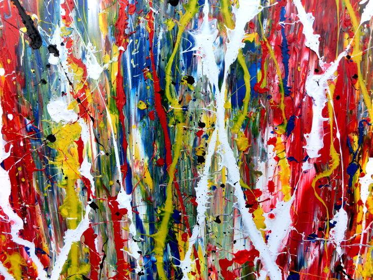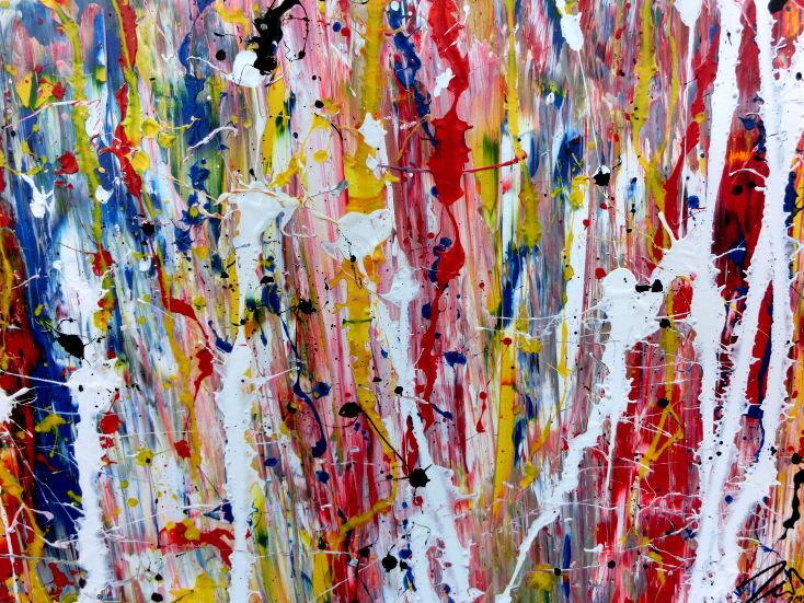 Hallo, ich bin Alex Zerr, der Künstler hinter diesem Gemälde. In meinem Atelier in Bad Lippspringe erschaffe ich abstrakte Acrylbilder, überwiegend im Action-Painting-Stil. Meißtens mit Acrylfarben und auf sehr großen XXL-Leinwänden, die meinem kreativen Prozess besonders viel Freiheit erlauben und oft zu beeindruckenden Gemälden führen.