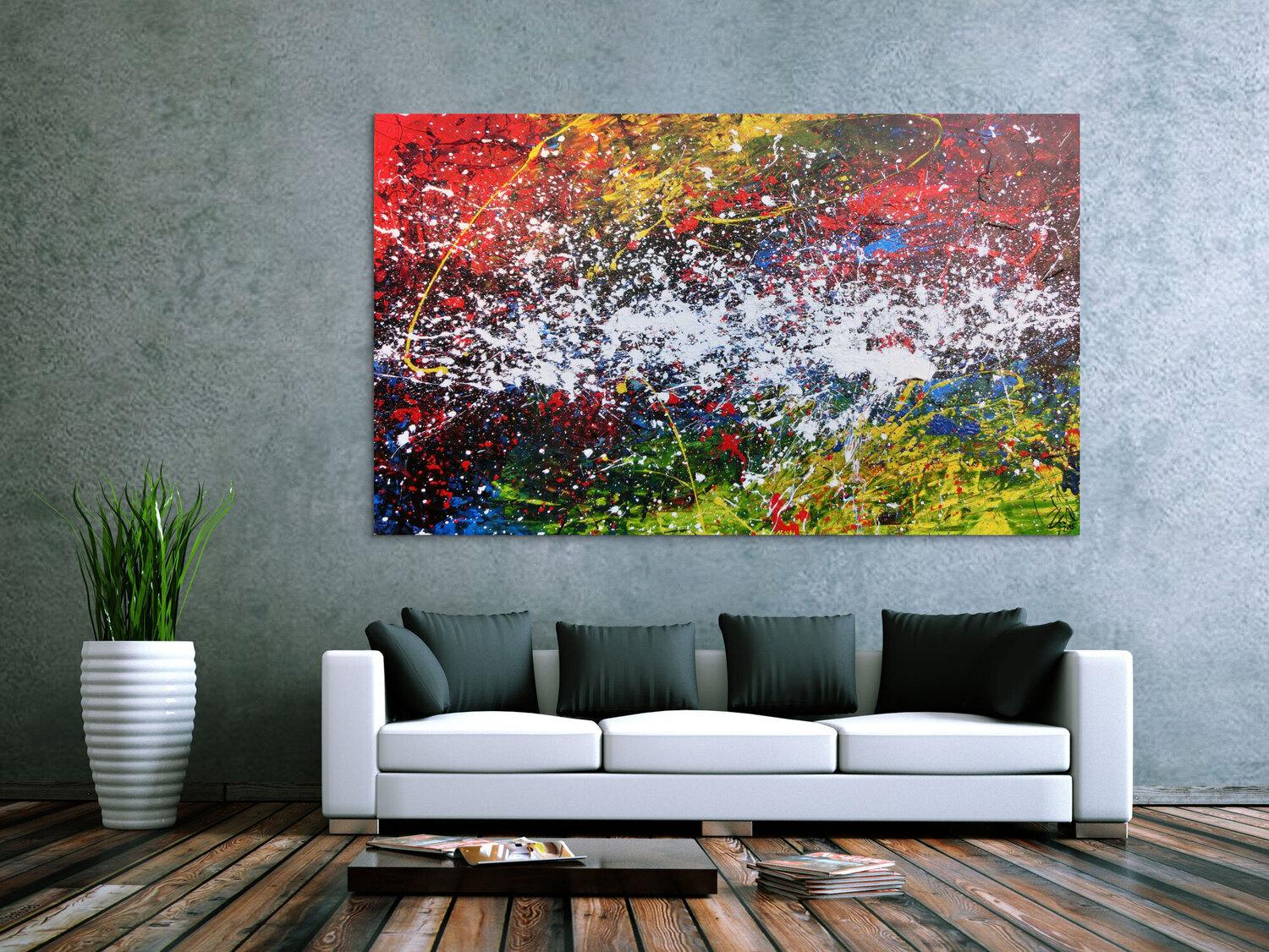 Abstraktes Gemälde auf Leinwand Buntes abstraktes Acrylgemälde modern mit vielen Farben in 120x200cm von Alex Zerr