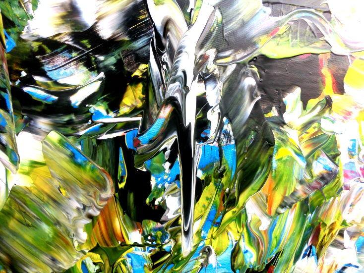 Dieses Werk ist wie alle meine Bilder: spontan entstanden, ganz intuitiv und ohne festes Konzept, und spiegelt oft meine momentane Stimmung wider wie auf der Leinwand festgehalten wurde.